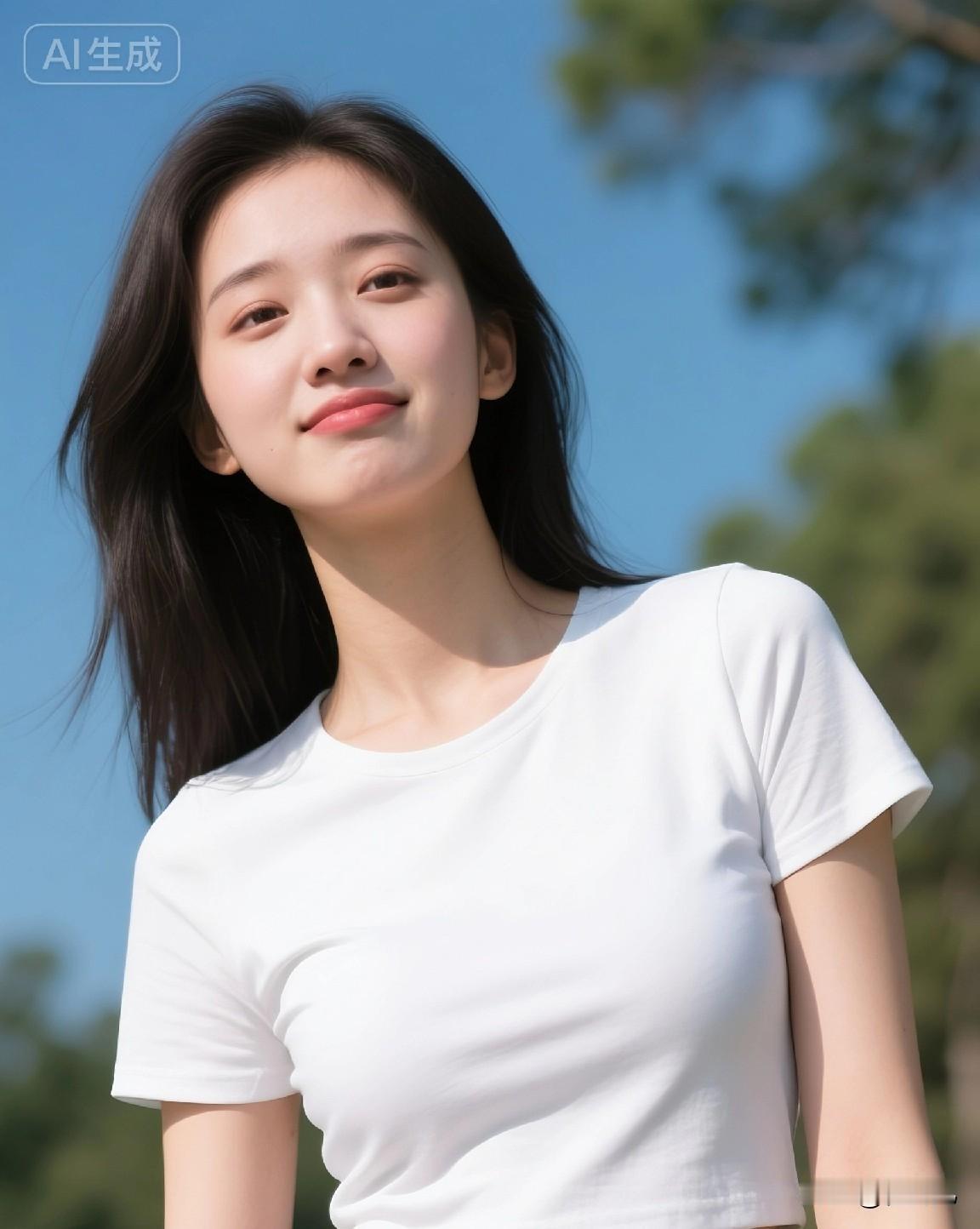 阳光下的微笑,那身着简约T恤的身影,散发着清新自然的气息。清新自然又是美好的一天