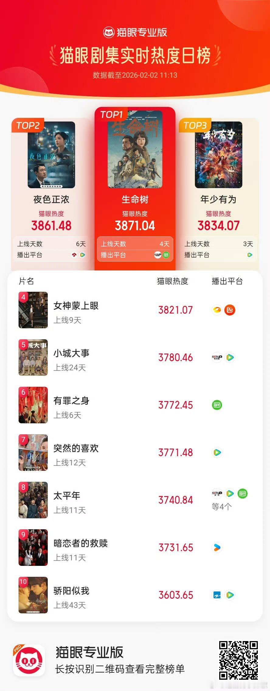 杨紫《生命树》播出以来的成绩单,作为热度口碑正剧,同时还登顶各大榜单🌳