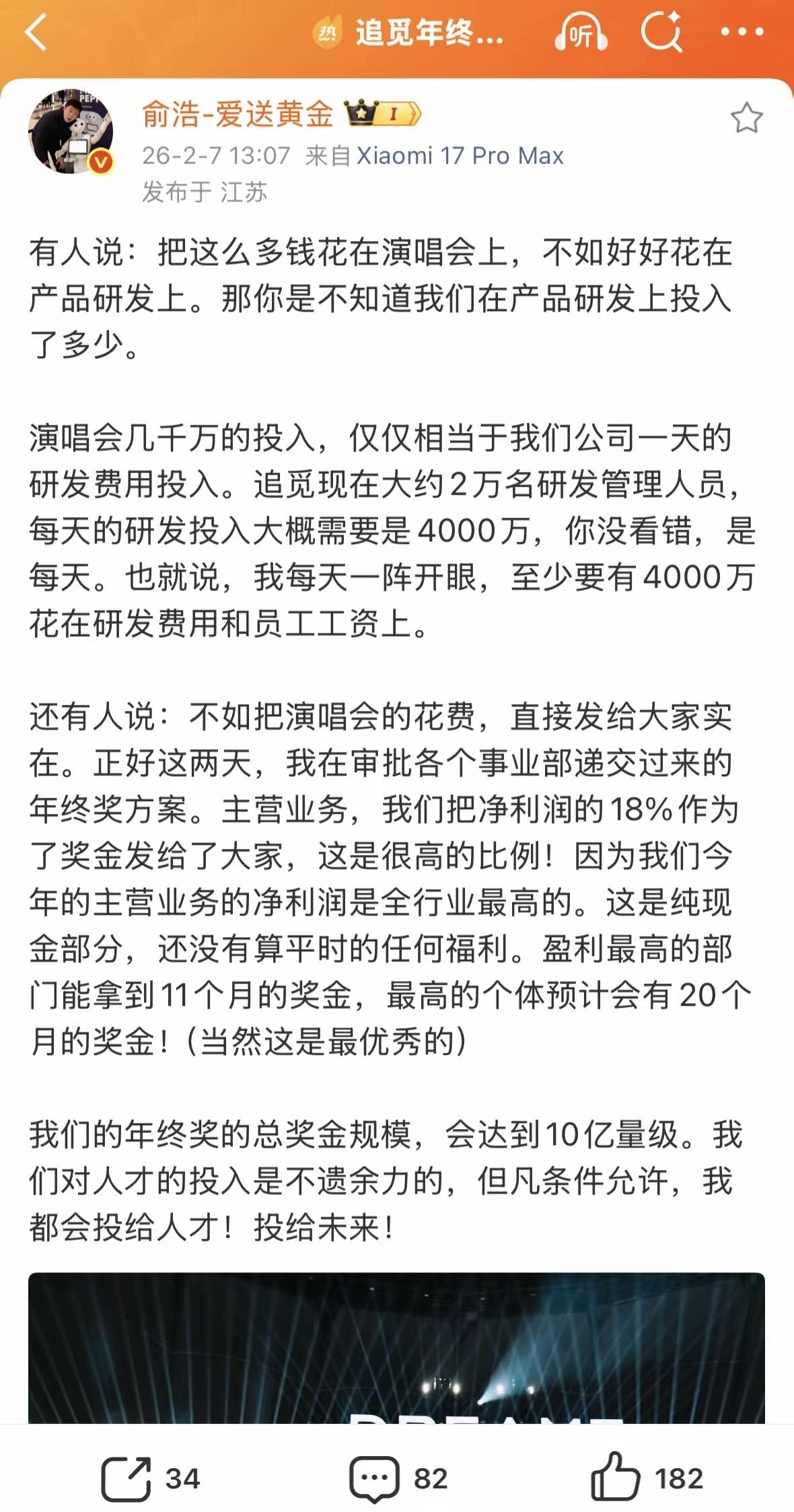 有一个会讲ppt又快速增长的公司,最幸运的就是这段时间的员工了 追觅老板承诺给员工10亿年终奖。 对员工来说,不用管未来怎么样,当下能拿的就先拿了最重要。 资本的钱 品牌溢价的钱足以支撑。 至于未来倒闭了或者下滑了 像恒大 像阿里巴巴。员工直接换一个地方就行。