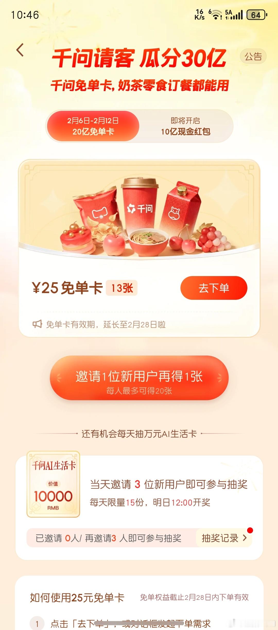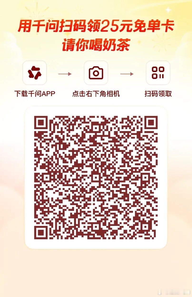 千问 喝奶茶买盒马也可以薅羊毛了!千问30亿请客全国人民吃喝玩乐的活动开始了,我刚刚就抽到了免单卡买年货,直接可以送到家!方法是扫码应用市场下载千问APP,扫我的二维码,必得25块奶茶免单。评论区晒千问下单的奶茶截图,明天随机抽5名粉丝每人得25元红包,福利继续加码!