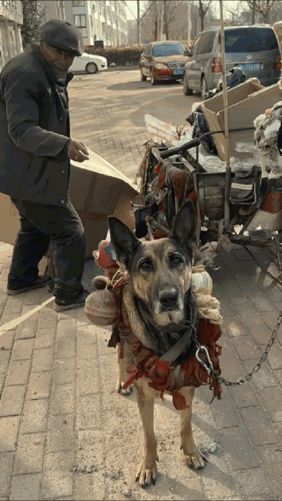 泪目了,山东,拾荒老人从垃圾桶捡回一只小狗,省吃俭用养它。老人年纪渐长腿脚不便,一次随口说想让狗帮忙拉车,没想到它竟真的叼起车绳往前走,这一拉就是十几年。 15年前一个寒冬,老人在垃圾堆发现了一只瘦骨嶙峋、浑身湿透的小狗,冻得奄奄一息连叫的力气都没有。 老人心善,不顾自己日子清贫,脱下旧棉袄裹住小狗抱回家,用省下来的馒头、稀饭喂它,给它治伤,给它一个家,还为它取名为虎子。 日子一天天过去,虎子慢慢长大,而老人年纪渐长,腿脚越来越不便,关节炎、脑血栓后遗症让他走路、干活都吃力,出门拾荒都成了难事。 虎子为了报恩主动帮老人拉车,老人说没有虎子拉车,他哪也去不了。 如今虎子已经16岁高龄,步伐不再矫健,拉车时也会喘粗气,老人也已经76岁,身体大不如前。但只要老人一声轻唤,虎子仍会立刻起身叼起车绳,拼命往前冲。 这就是双向奔赴的爱!老人清贫却给了流浪小狗生的希望,而小狗则用一生的忠诚来报恩。 谁能想到,这场跨越物种的羁绊里藏着比人类更深刻的生存哲学。当虎子第一次叼起车绳时,它或许不懂什么叫"报恩",但它知道那个裹着霉味棉袄的老人,曾用体温融化过它濒临死亡的寒冬。这种原始的依存关系,在钢筋水泥的现代社会里,反而折射出最刺眼的光芒——我们总在谈论智能设备如何取代人力,却鲜少思考:当科技越发达,人类是否正在丧失最本能的温度? 更值得玩味的是,这个故事撕开了温情面纱下的残酷现实。老人布满裂痕的双手既要攥紧生活的绳索,又要托举另一个生命的希望,这何尝不是千万底层孤寡老人的缩影?他们像风中残烛般倔强活着,却意外成为流浪动物最后的避风港。当城市管理者忙着清理街角的流浪猫狗时,可曾想过这些被遗弃的生命,恰恰是某些人活下去的精神支柱? 虎子蹒跚拉车的身影,恰似照向人性暗处的明镜。它让我们看见:真正的文明不该是冰冷的效率至上,而是允许弱小者相互取暖。那些被命运碾碎尊严的人与动物,反而在绝境中完成了对生命尊严的最高诠释。当商业广告不断兜售"高端萌宠"概念时,这对老伙计用十四年光阴证明,最珍贵的羁绊从来与品种血统无关。 此刻暮色中的山东小巷,铁轮碾过青石板的声音依然规律作响。老人佝偻的脊梁和虎子泛白的皮毛,在夕阳里勾勒出一道震颤人心的风景线。这不是什么悲情故事,而是两个被时代遗忘的灵魂,用最笨拙的方式书写着存在主义的诗篇。他们的存在本身,就是对这个高速运转社会的温柔反抗。 各位读者你们怎么看?欢迎在评论区讨论。请用一句话概括一下,什么是幸福