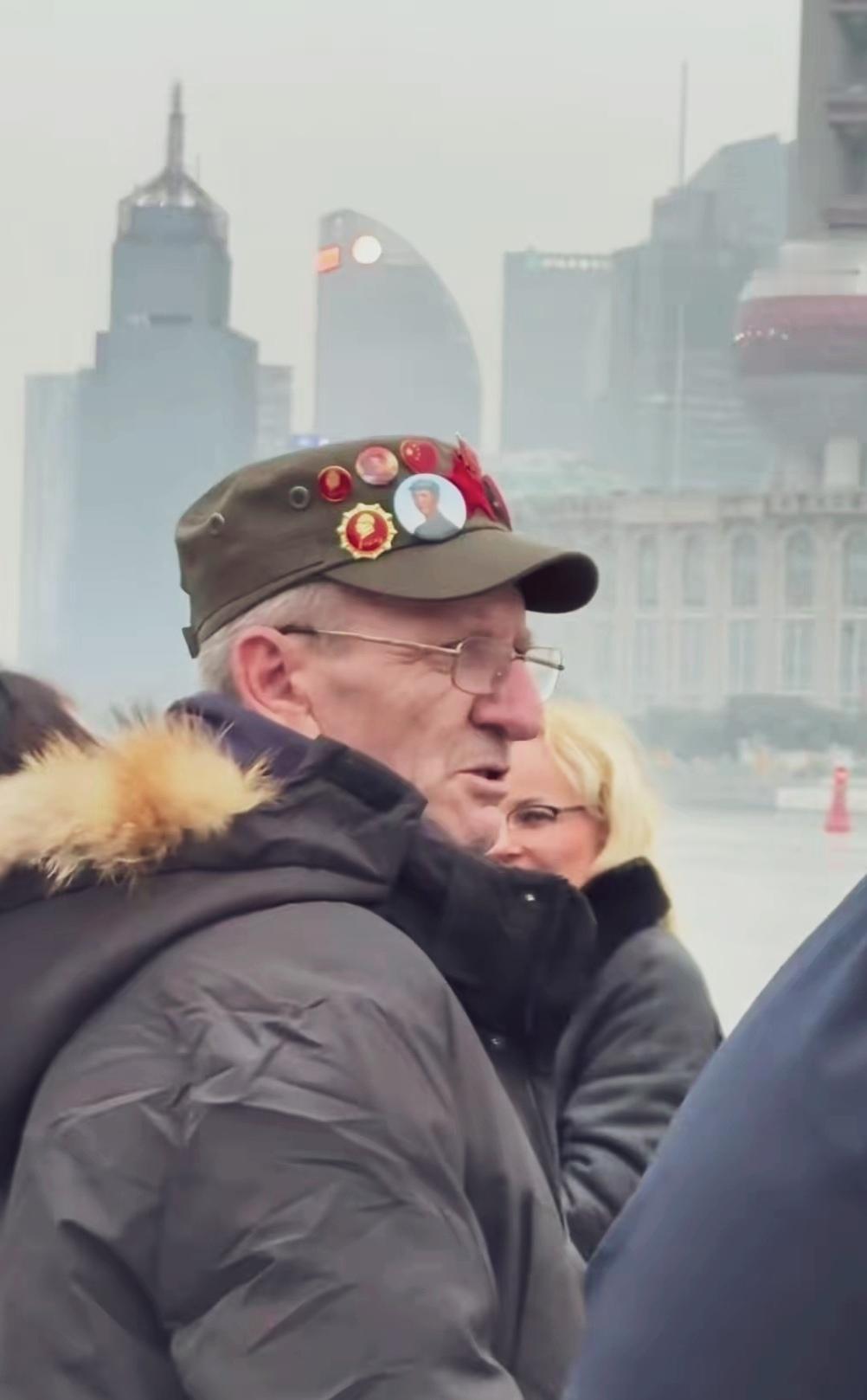 嚯!这个外国老头,帽子前边挂满了毛主席像章和红五星,一看就是个追星族。据说,他年轻时就崇拜毛主席,一直到现在,准备追到地老天荒… 毛爷爷纪念像章 金色伟人像章