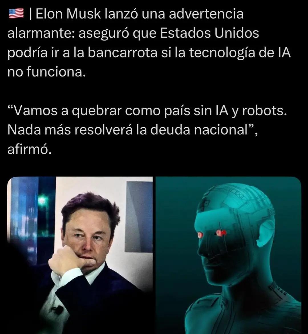 最近,马斯克在播客里的一句话炸了:“没有AI和机器人,美国1000%会走向破产。” 这话听起来像噱头,但背后藏着美国现在最核心的困局——38.5万亿国债压顶,利息支出已经超过军费,传统的财政手段已经玩不转了,只能把国运赌在AI这张牌上。 一、事件本身:不是危言耸听,是财政死局 先看一组扎心的数据: - 美国国债总额已经突破38.5万亿美元,占GDP比重超过130%。 - 2026年,美国国债的年度利息支出达到了1.24万亿美元,这是历史上首次超过国防预算。 - 更可怕的是,美国已经进入了“借新债还旧债利息”的阶段,形成了一个无法逆转的“债务-利息螺旋”。 马斯克的警告,就是在这个背景下说的。他很直接:“加税、削减福利这些老办法,要么引发政治反弹,要么损害民生,根本解决不了问题。只有AI和机器人带来的生产力革命,才能创造足够的经济增量,把这个窟窿填上。” 说白了,美国现在的财政已经是个死局,而AI就是他们手里唯一的破局稻草。 二、各方动机:科技巨头的野心,和国家的焦虑 1. 马斯克的算盘 马斯克现在的身份很特殊,他既是特斯拉、SpaceX的老板,又是特朗普政府“政府效率部”(DOGE)的负责人。这个部门的核心任务就是“砍预算、减浪费”。 他抛出“AI救国论”,有两层意思: - 对内施压:告诉国会和公众,别再纠结于怎么省钱了,省钱救不了美国,只有技术突破才行。 - 对外造势:为自己的商业帝国铺路。他的xAI、特斯拉Optimus机器人,都是这场“AI救国”大戏的核心角色。 2. 美国政府的焦虑 特朗普政府上台后,把AI提升到了国家安全和经济命脉的高度。2026年,美国国防部的AI预算增长了38%,还向OpenAI、谷歌等公司授予了数亿美元的合同,目标就是“用AI重塑战争形态,巩固全球霸权”。 对美国来说,AI已经不是一个产业问题,而是一个生存问题。如果在AI竞赛中输给对手,不仅经济会崩溃,军事优势也会荡然无存。 三、时间节点:为什么是现在? 2026年是一个非常关键的节点: - 债务压力达到临界点:利息支出超过军费,意味着美国政府的钱,越来越多地用来还债,而不是发展经济和军事。 - 大选后的政策窗口期:特朗普政府刚刚上台,需要一个宏大的叙事来凝聚共识,转移国内矛盾。“AI救国”就是一个完美的故事。 - 技术成熟度刚好:大模型、人形机器人等技术已经从实验室走向产业化,具备了大规模应用的基础。 所以,马斯克在这个时候发出警告,既是对现实的判断,也是对未来的押注。 四、对全球格局的影响:战争与和平的新变量 当一个国家把国运赌在技术上时,它的对外政策必然会变得更加激进。 1. 军事升级的风险 美国已经明确提出,要构建“AI优先”的作战力量。这意味着,未来的战争会更加智能化、无人化,决策速度会更快,误判的风险也会更高。 在俄乌冲突、台海问题上,美国可能会更倾向于用AI驱动的军事手段来施压,而不是通过谈判解决问题。 2. 科技博弈的加剧 AI已经成为大国竞争的核心赛道。美国会不惜一切代价,阻止对手获得先进的AI技术,同时加速自己的技术落地。这会导致全球科技供应链的进一步割裂,甚至引发新的“冷战”。 3. 战争是否接近尾声? 从目前的情况看,战争不仅没有接近尾声,反而可能因为AI的介入而变得更加复杂。美国需要通过对外博弈,为自己的AI发展争取时间和空间。 只有当AI技术真正成熟,能够有效缓解美国的债务压力时,它才会有动力回到谈判桌前。 五、理性的出口:技术不是万能的 马斯克的警告,让我们看到了美国的焦虑,但我们也要清醒地认识到: - AI不是万能的:它可以提高生产力,但无法解决贫富差距、社会撕裂等根本问题。 - 对抗没有未来:大国之间的科技竞赛,如果演变成零和博弈,最终只会两败俱伤。 - 合作才是出路:AI是全人类的财富,只有通过对话和合作,才能让技术真正服务于和平与发展。 说到底,美国的债务问题,本质上是一个治理问题,而不是一个技术问题。把所有希望寄托在AI上,本身就是一种巨大的风险。