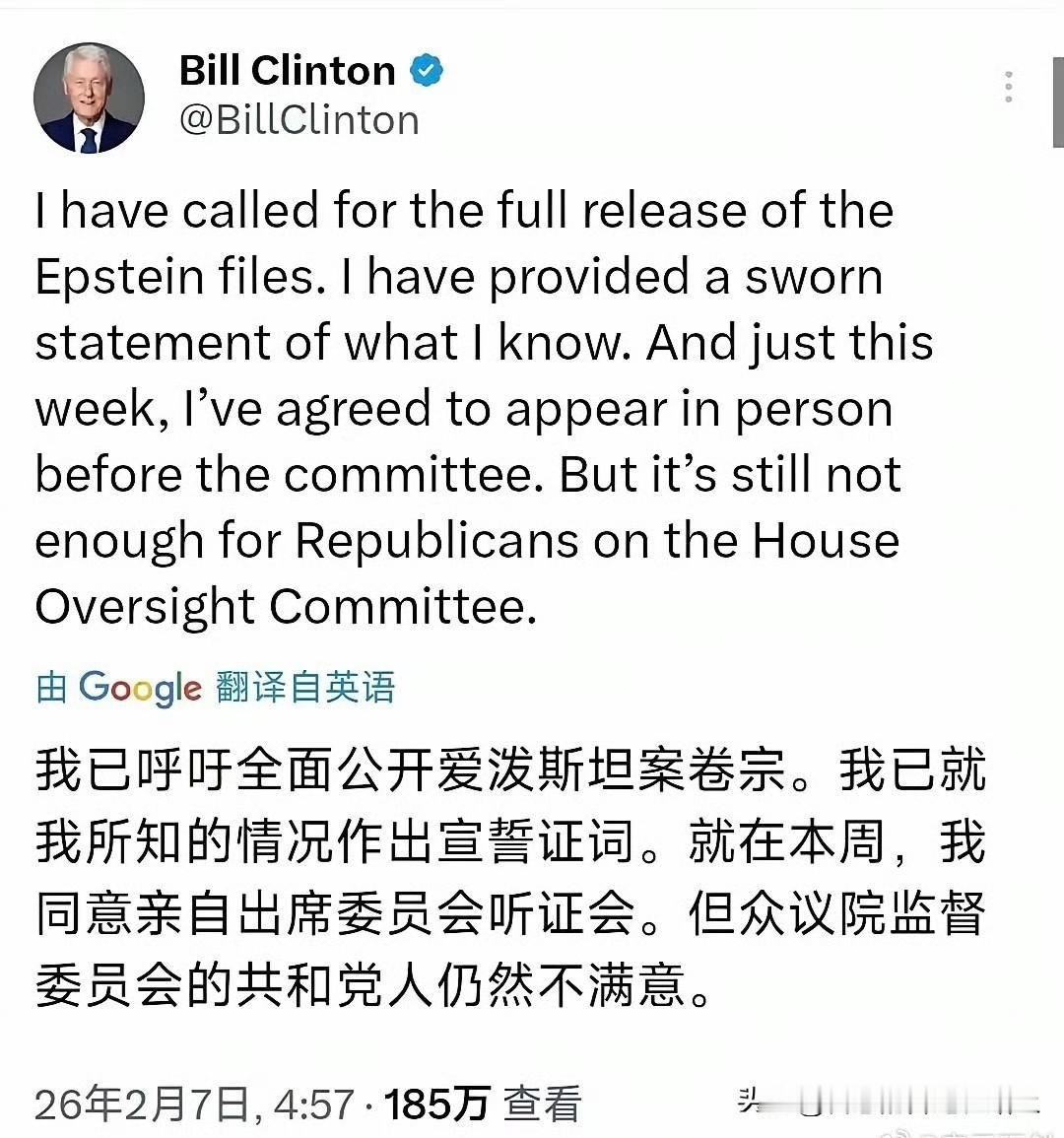 克林顿要求公开爱泼斯坦案卷,这是以退为进,真公开了,美国两党全部有政客卷入,大家一起死