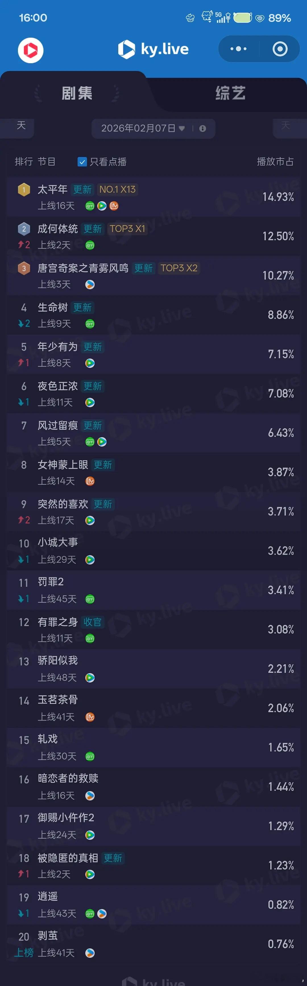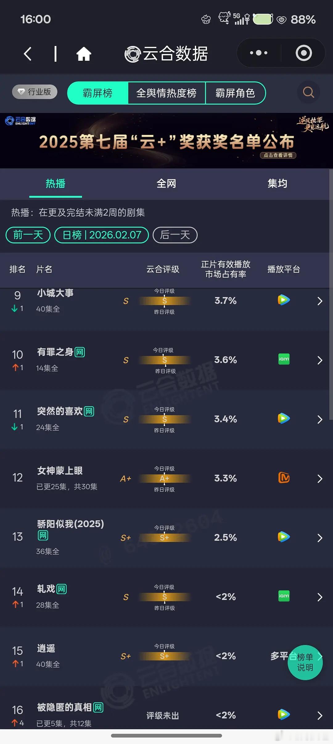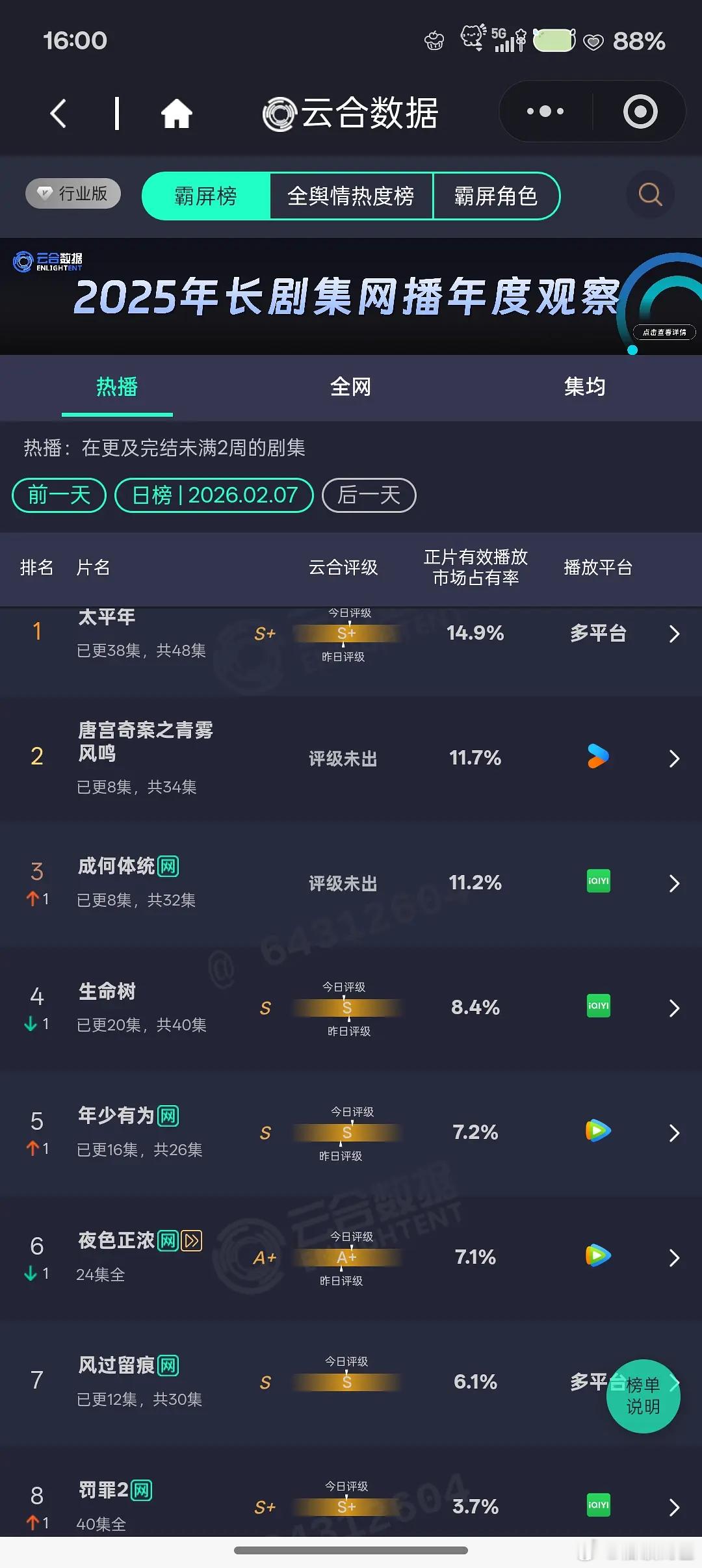 昨日云合、酷云唐宫奇案之青雾风鸣云合11.7%酷云10.27%成何体统次日云合11.2%酷云12.5%风过留痕首评级S