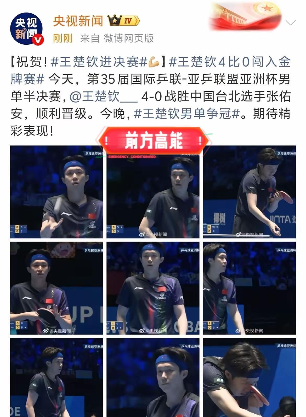 国乒孤勇者王楚钦太顶了! 海口亚洲杯半决赛 直面最大黑马张佑安,直接4:0零封横扫,稳稳挺进今晚决赛! 队友出局后他独守半区,一边要应对赛场闪光灯的无端干扰,一边要拆解小将的搏杀打法,可他愣是用稳到极致的控场,把黑马的锐气彻底打没,这就是世界第一的硬实力! 真正的强者从不是无压力作战,而是明知身后无援,仍能沉下心拿下每一分,王楚钦扛住的不只是比赛,更是国乒主场的期待! 今晚决赛他依旧没有退路,可这样的孤勇者,从来都是在绝境里造奇迹的!你觉得大头今晚能拿下冠军,成功卫冕吗?