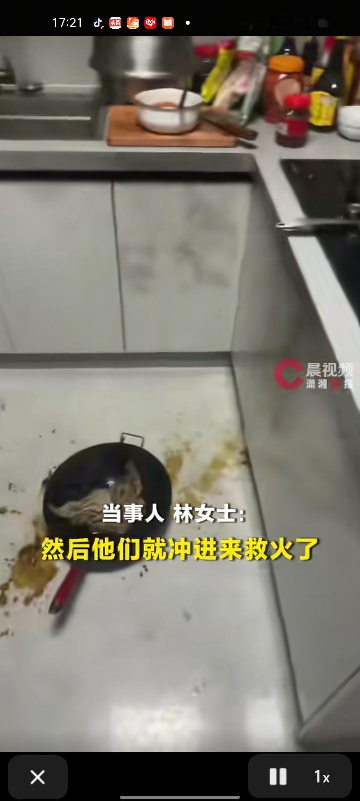 近日,湖南益阳。林女士婚后第一次去婆家下厨,本想给他们大显身手,不小心把油温升高后锅就起火了,此时她在外面收拾东西没注意,幸亏她老公看见后冲进厨房就火,火不大但烟大,看着很吓人