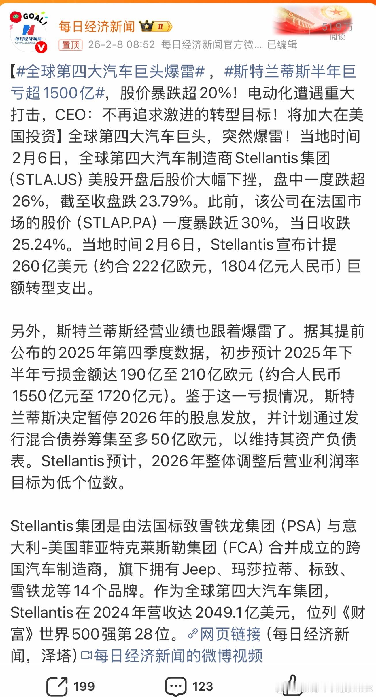 全球第四大汽车巨头爆雷????记得这个Stellantis集团好像是我们一家新势力汽车的大股东吧