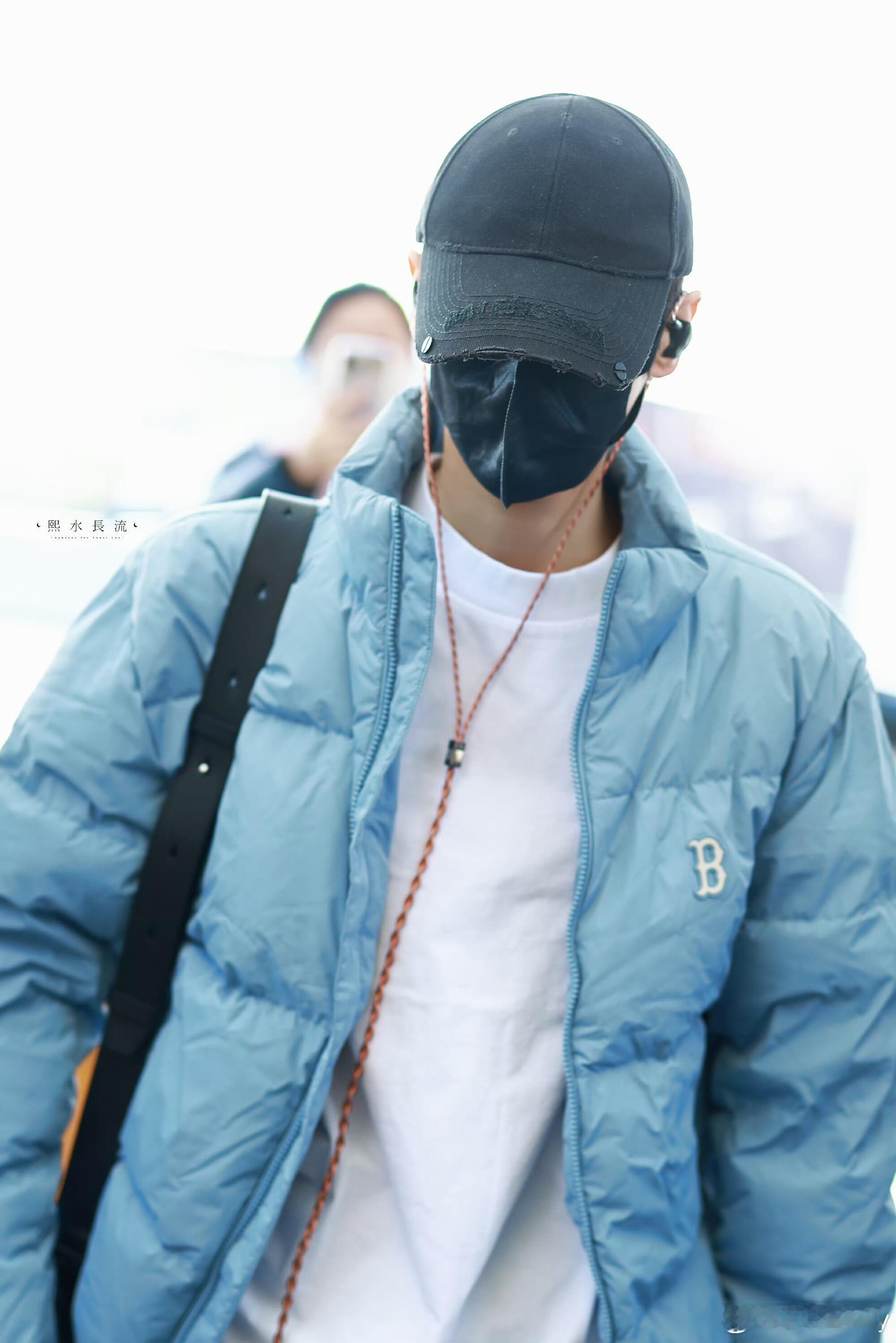 2.8罗云熙最新机场路透,哥哥回家过年了!穿MLB羽绒服好清爽帅气,这个衣服的颜色好显嫩!