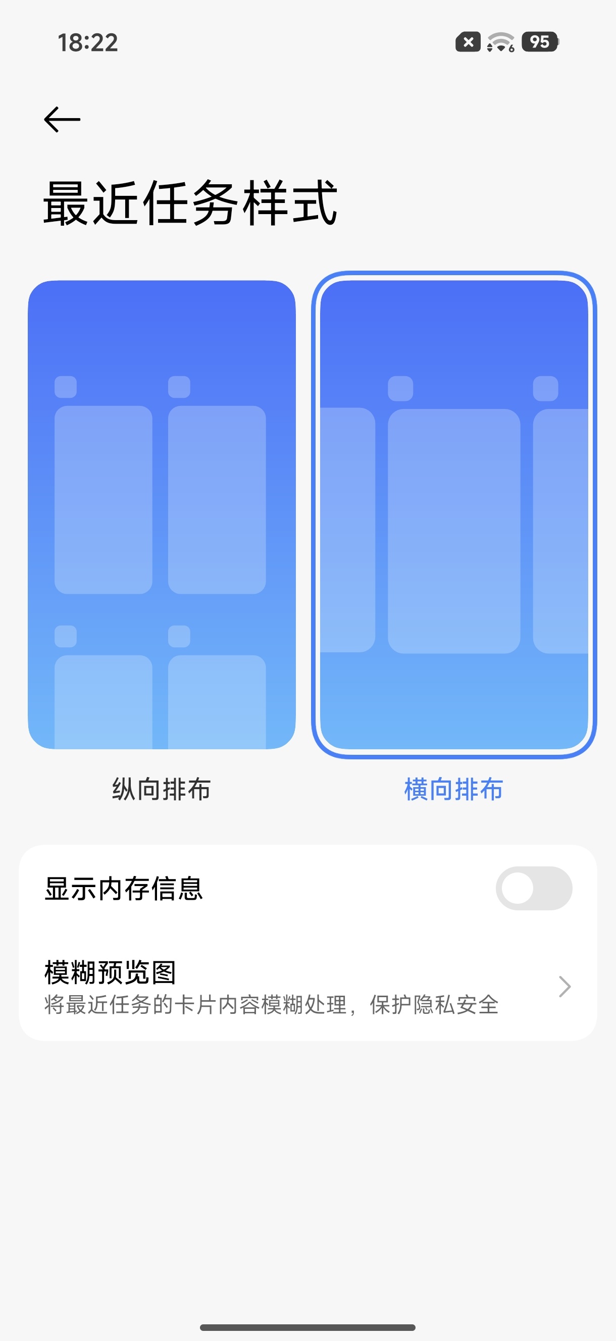 换个小米体验一下澎湃OS,换完机先把多任务排布样式改一下,竖向的体验多了,这横向你们现在真看得惯吗