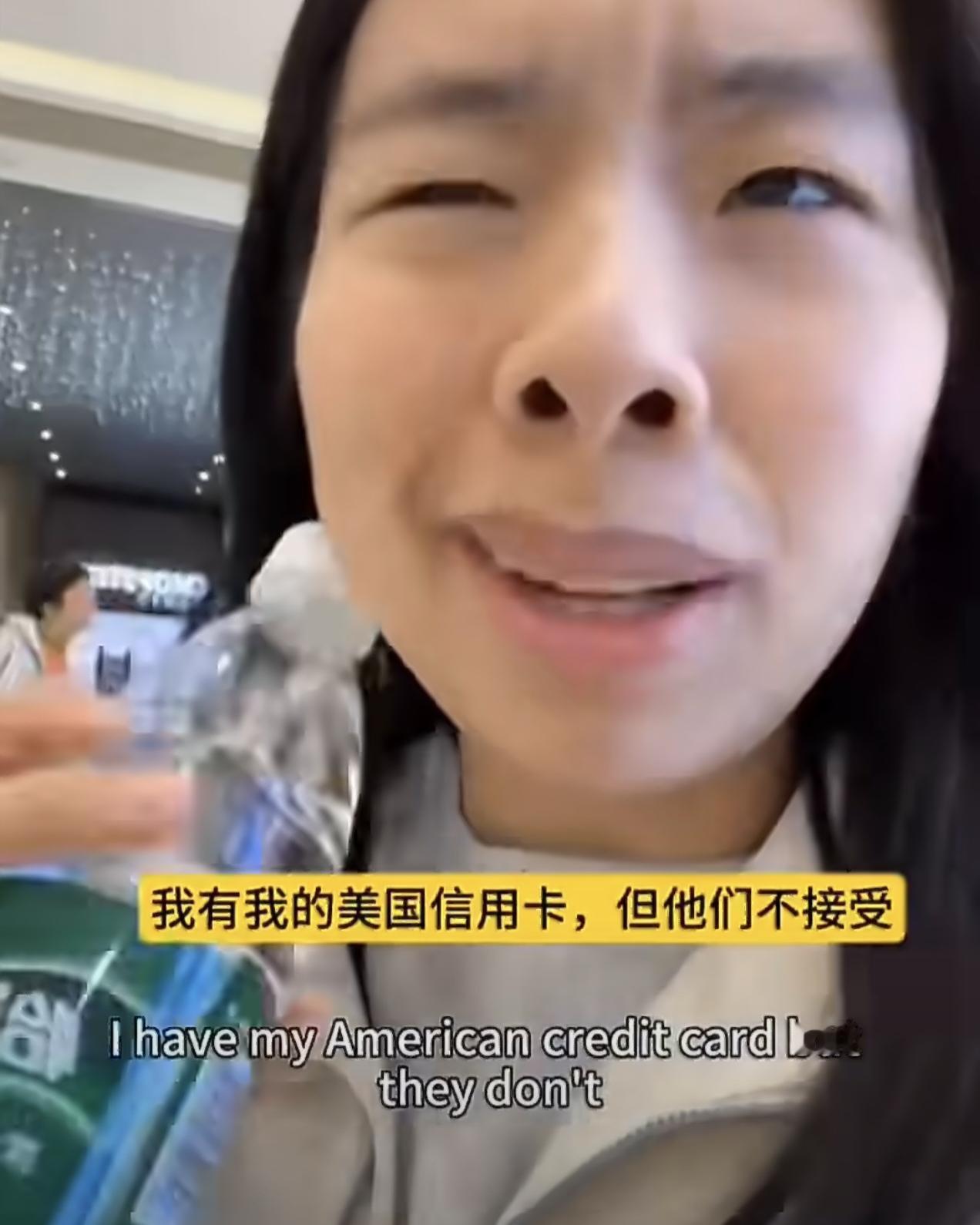 在中国真不习惯,居然用不了美国信用卡,买瓶水都不方便。 这位不知名的高华后代拥有天然的优越感,挑剔国内买东西不方便,因为商店不支持美国信用卡。而且她也看不懂中文。 其实这些高华后代已经完全西化了,连样貌都变了,中文也不认识,也不会说国语,思维美国化。 所以也不知道他们回来干嘛?是美国待不下去了?还是来走亲访友的?