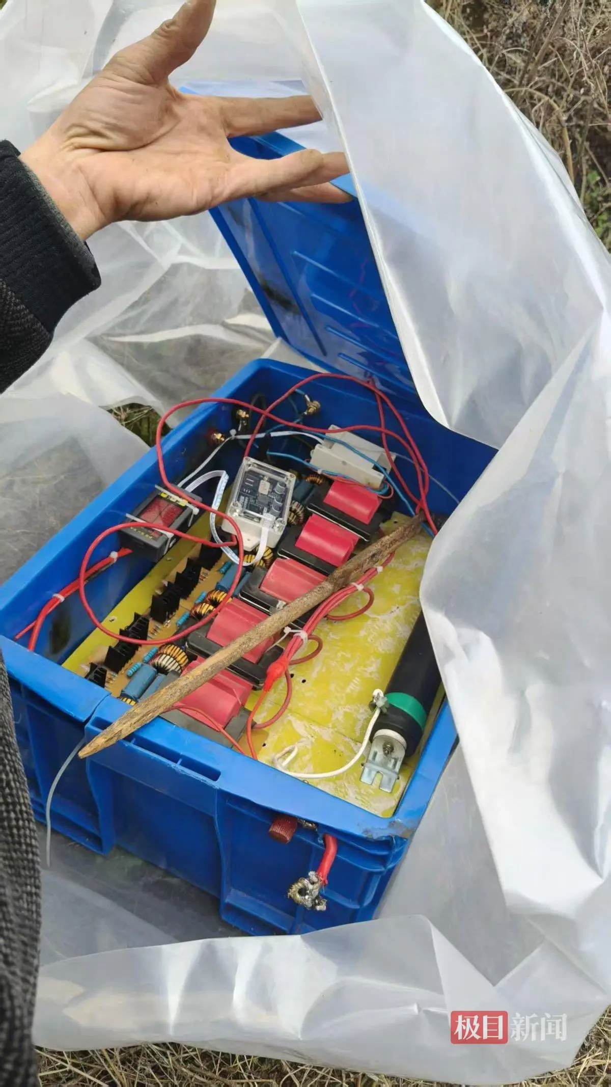 死者亲属称,肇事的捕猎电网横置在一米多宽的山路上,布置隐蔽,没有任何警示标志,目前已经进行了尸检,并提取了身体组织样本。家属还提供了现场找到的高压电瓶照片,高压电瓶装在一个蓝色盒子里,上方还盖有半透明塑料薄膜覆盖。家属称,他们了解到电瓶是高压电,有上万伏。