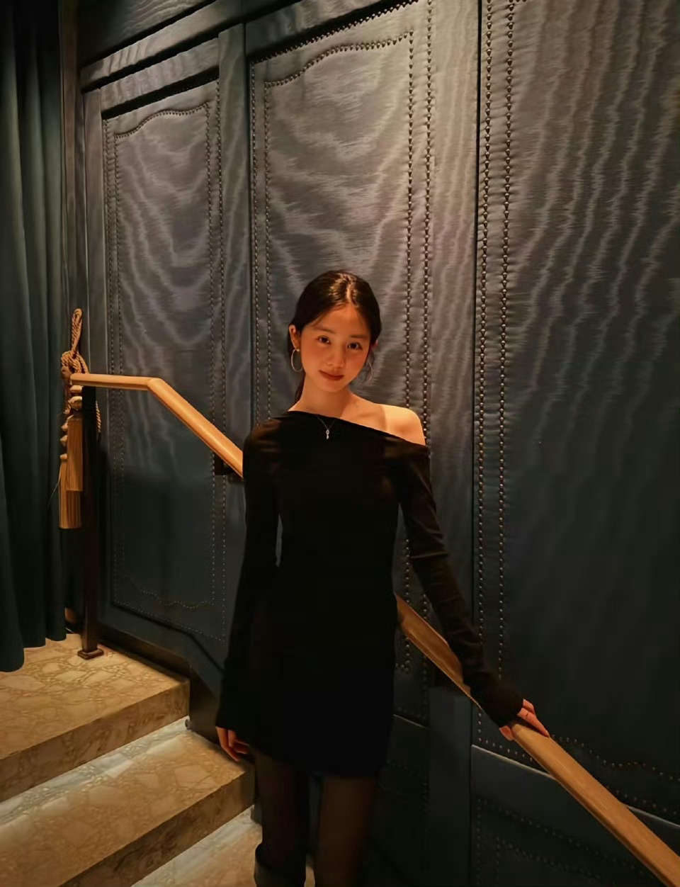 张天爱跟素人合影,胯真的好宽,大宅院似的