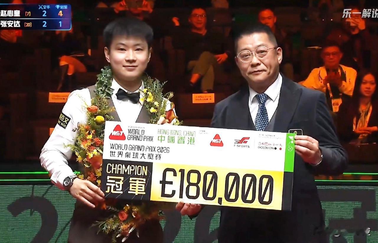 赵心童10-6战胜张安达,获得世界大奖赛冠军,拿到18万英镑奖金,世界排名升至第7,单赛季排名升至第6。 今天下午第一阶段,双方战成4-4。晚上第二阶段,赵心童开始发力,6-4领先后,被张安达追回一局,接着又变成7-5,分差拉大到两局。 这几局,赵心童占据一定优势,主要是准度高,失误稍微少一点,机会抓得好。张安达要改变目前的态势,防守端必须减少失误,而且要抓住机会。 第13局,张安达拿到73分,已经超6分,赵心童做了多杆斯诺克试图逆转,但没有成功,总比分6-7,分差缩小到一局。 第14局,张安达好不容易长台上手,结果只拿到5分就被出现架杆失误,被赵心童单杆134分清台拿下,8-6,分差又回到两局。 第15局,赵心童打进中袋上手,一杆65分,超了6分,张安达做斯诺克未能扭转局势,9-6赵心童率先拿到赛点。 领先3局且拿到赛点的赵心童越战越勇,第16局抓住张安达失误机会,一杆破百,总比分10-6战胜张安达,获得冠军。 赵心童还凭借145分拿到单杆最高分奖金1万英镑。 本次夺冠是赵心童职业生涯获得的第4个排名赛冠军,之前的3个冠军分别是:英锦赛、德国大师赛和世锦赛。 今天夺冠后的赵心童世界排名升至第7,单赛季排名升至第6,而且获得了即将进行的球员锦标赛资格。 张安达虽然无缘职业生涯第二个排名赛冠军,但获得亚军也是了不起的成绩,其世界排名升至第20位,单赛季排名升至第15,也获得了球员锦标赛资格。虽然张安达的世界排名离前16还有一段距离,但只要继续努力,稳定发挥,重返前16并不遥远。 恭喜赵心童,也祝福张安达!
