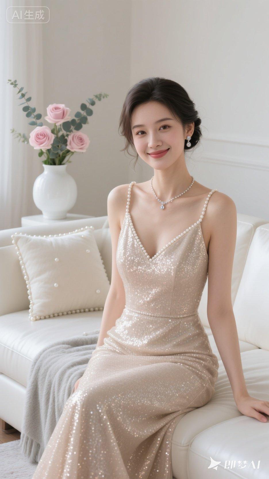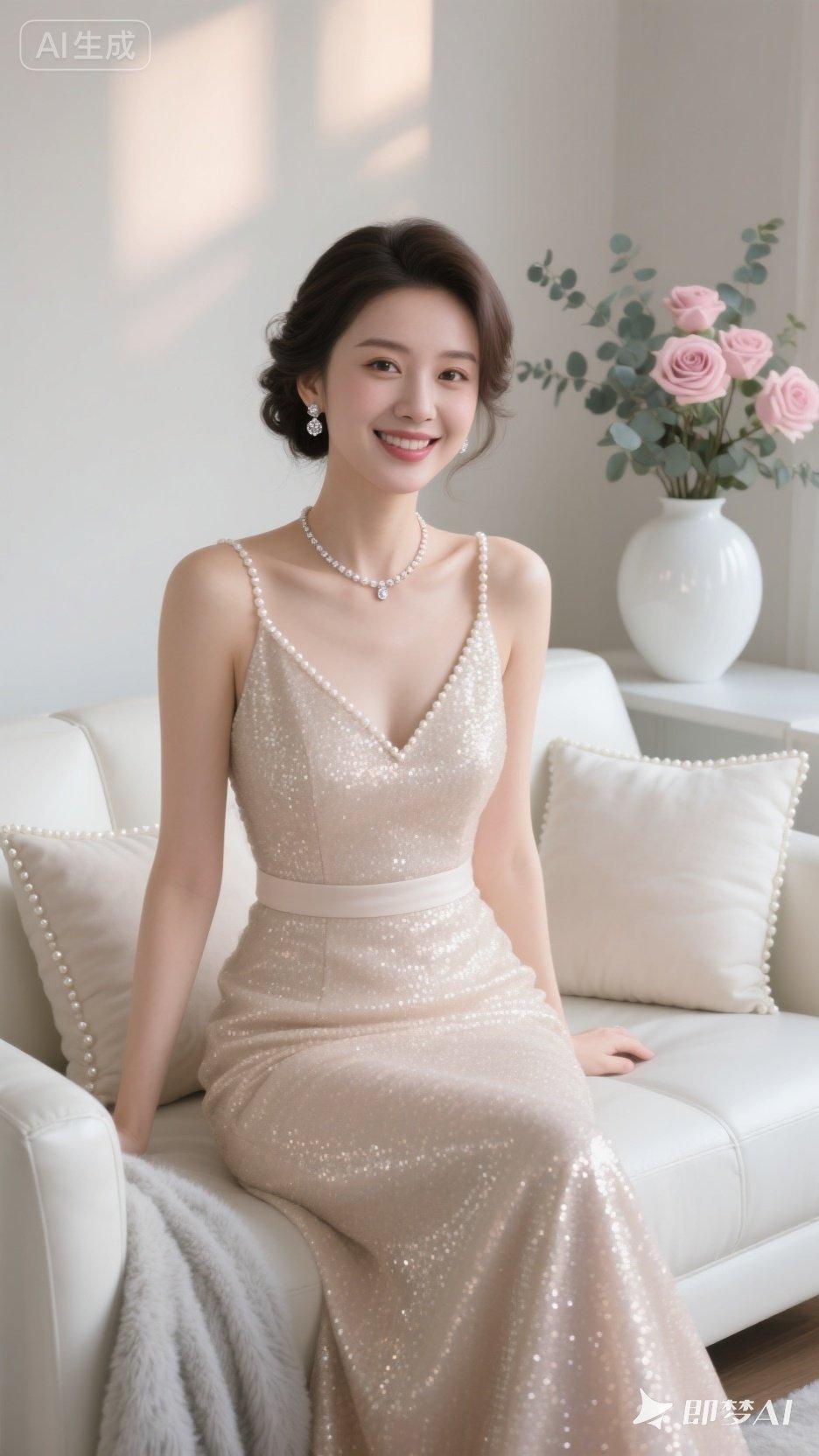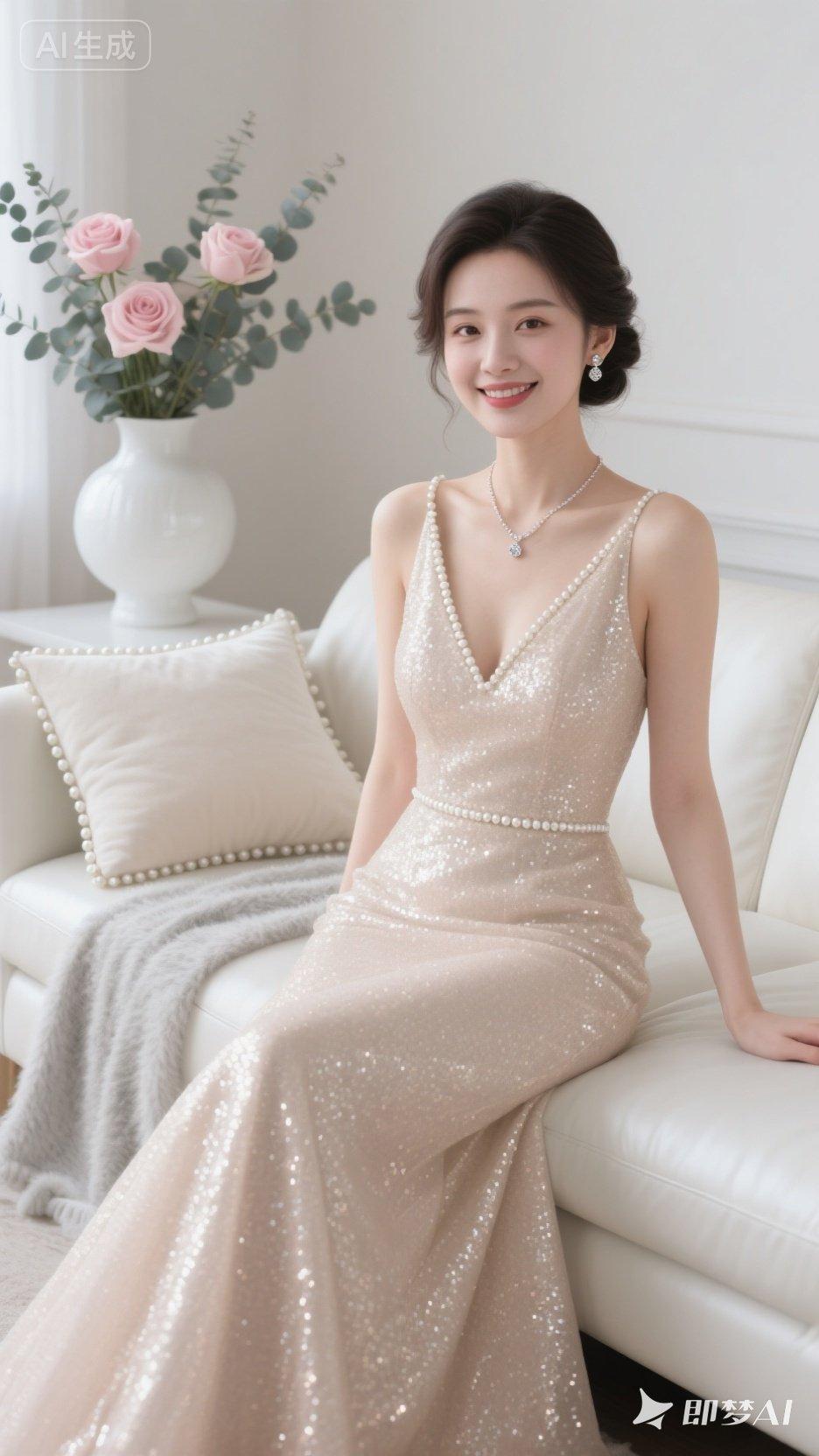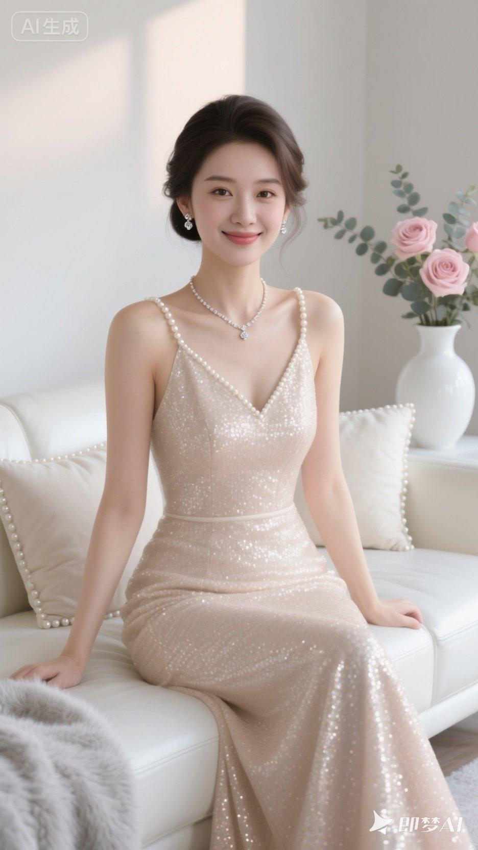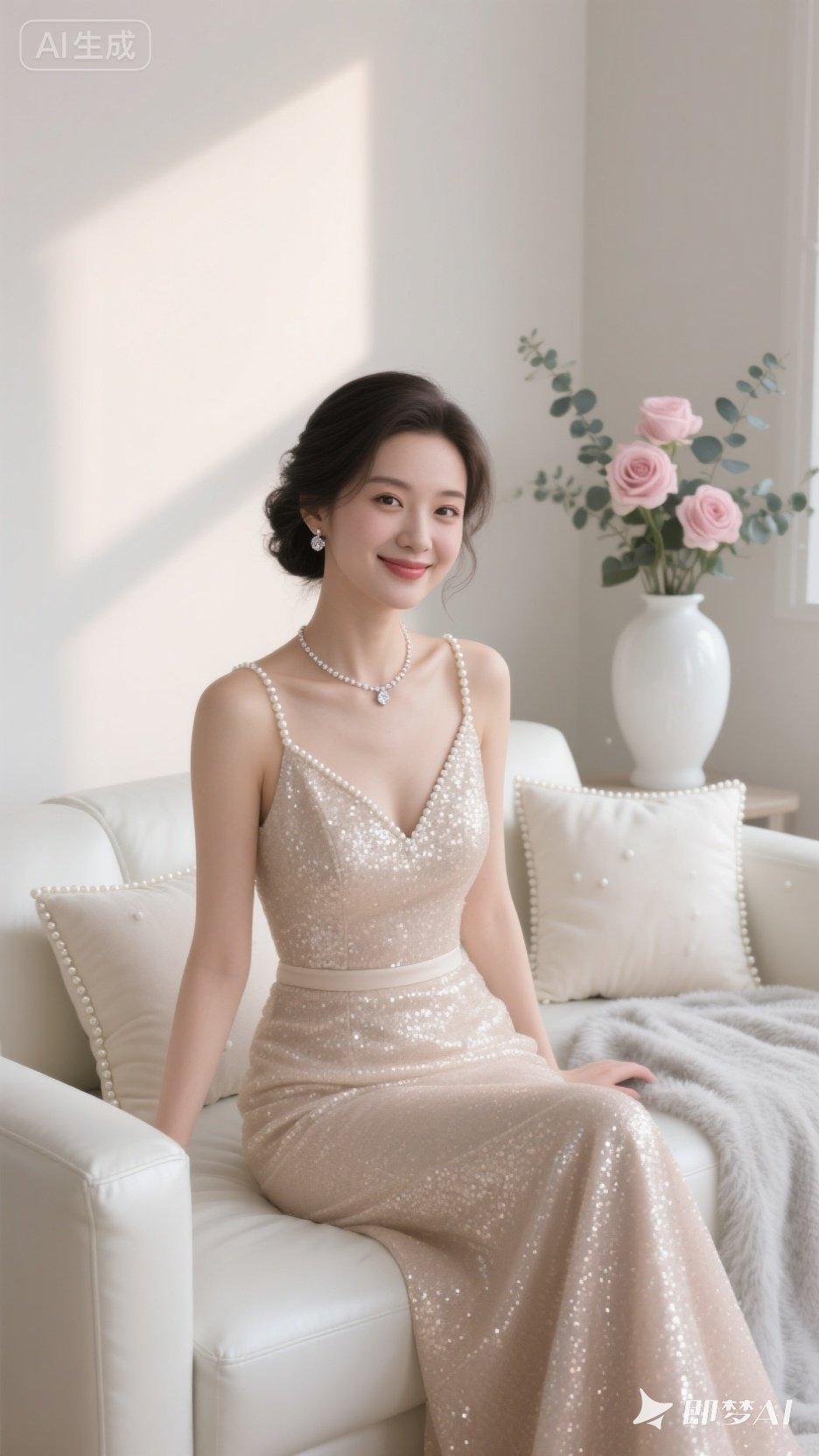 优雅珍珠项链,闪耀晚礼服,甜美笑容,梦幻少女心