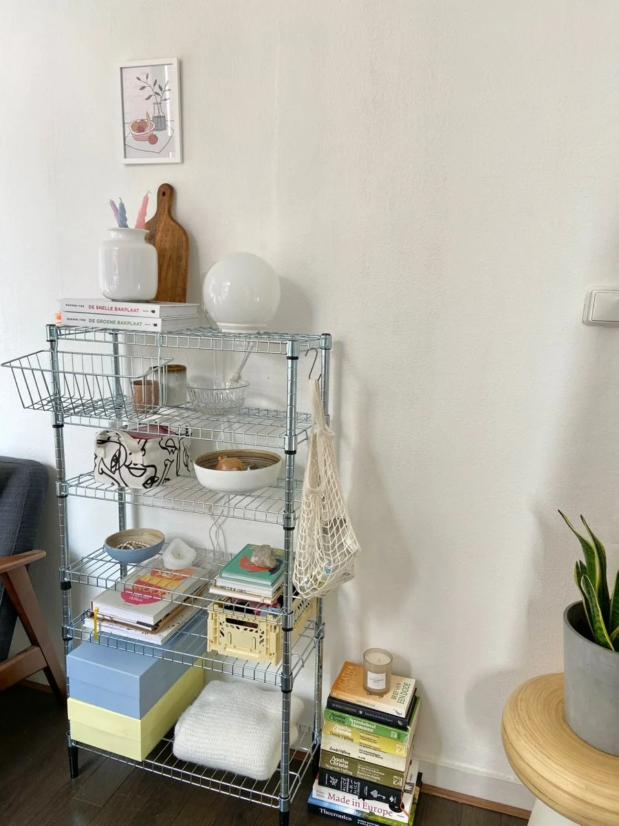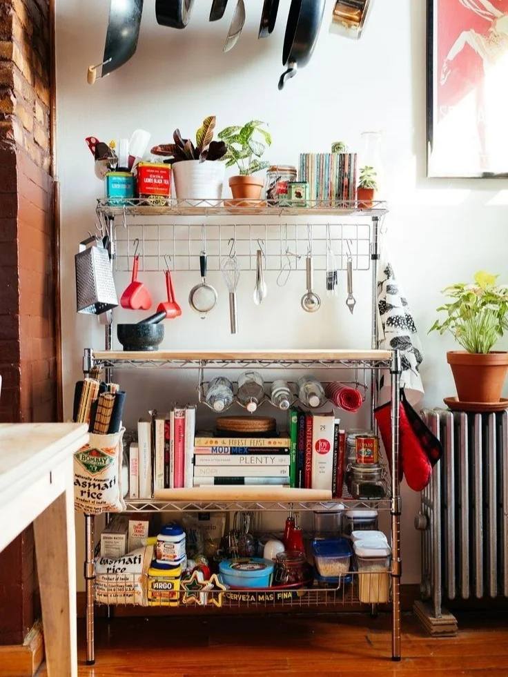 深度研究过收纳的都知道, 一个高颜值的置物架真的非常实用, 像muji、宜家都推出过类款, 如果你想要性价比更好的款式, 宜家奥马尔置物架就不错 银色金属材质,带着点包豪斯的劲儿, 可以说是金属大乐高,既可以单独使用, 也能高高低低组合起来用, 摆点书、绿植、台灯或者心爱的家居小摆件,实用又美丽, 在上面加一块定制板,就有了台面, 餐边柜、电器柜它都能胜任~ 立体收纳不占地儿,尤其对小户型很友好 图源:Pinterest