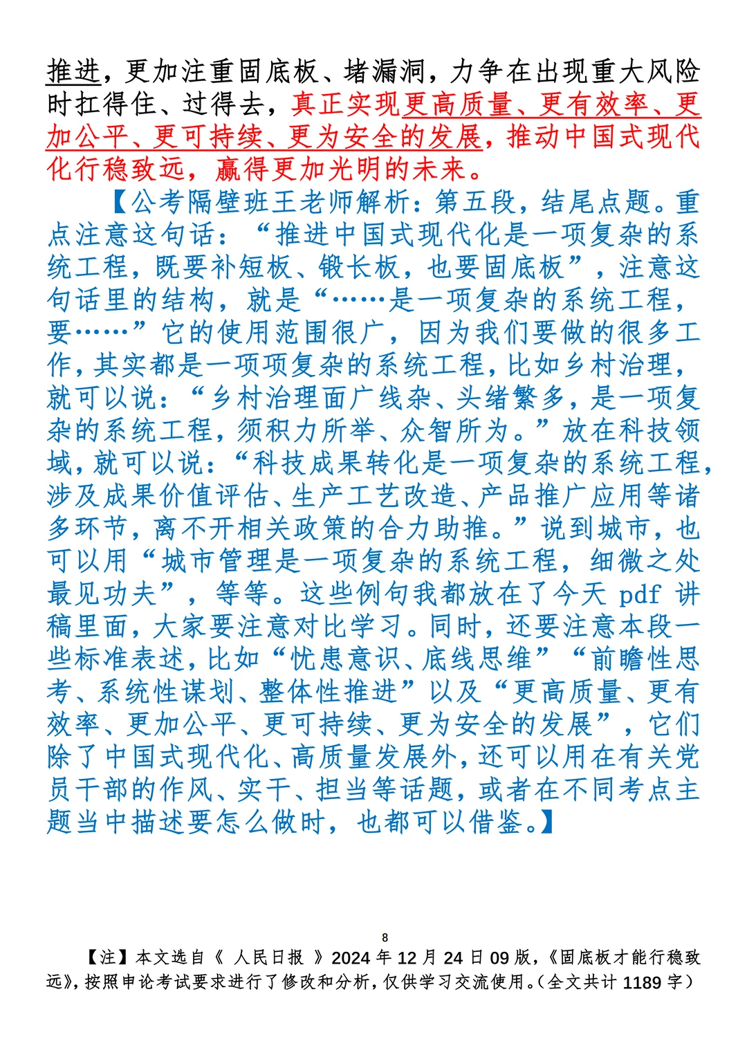 如何抄写:每日抄写文章发在“公考隔壁班王老师”账号,红色字是重点句和结构句,黑色字是正文,蓝色字是解析,大家抄写时不必抄蓝色字。建议先通读全文,做到心中有数再开始抄写,效果会更好。 关于文章:抄写文章来源于人民日报,但每篇文章我都根据申论考试要求进行了修改:一是重写或修改开头、结尾;二是统一段首句句式结构;三是调整段落字数,使文章结构更均衡;四是简化复杂长难句,使之更具可模仿性。每篇文章无论修改多少,都是基于申论考试要求,毫无对人民日报文章品评之意。(此处致敬人民日报)