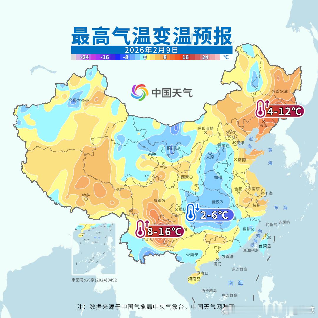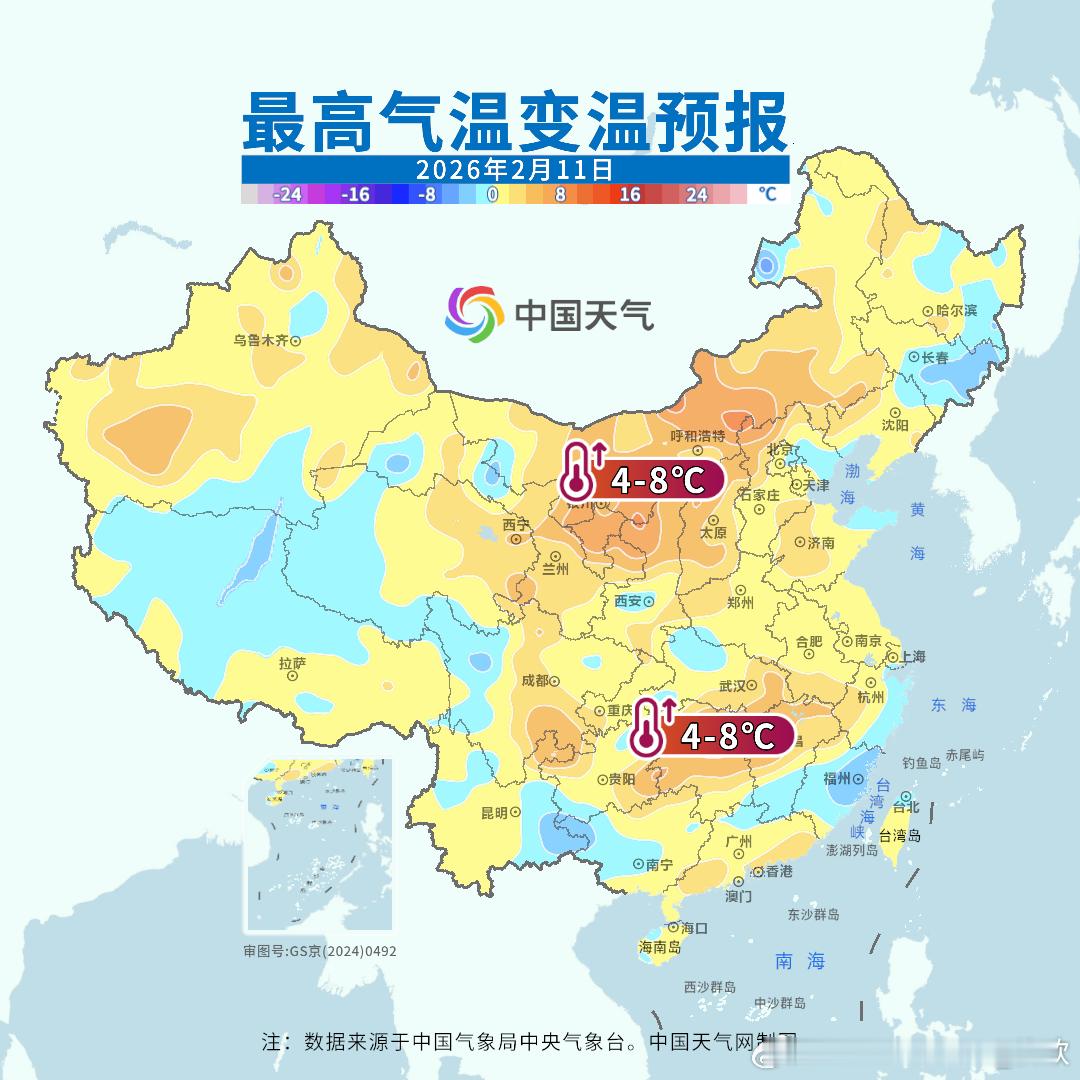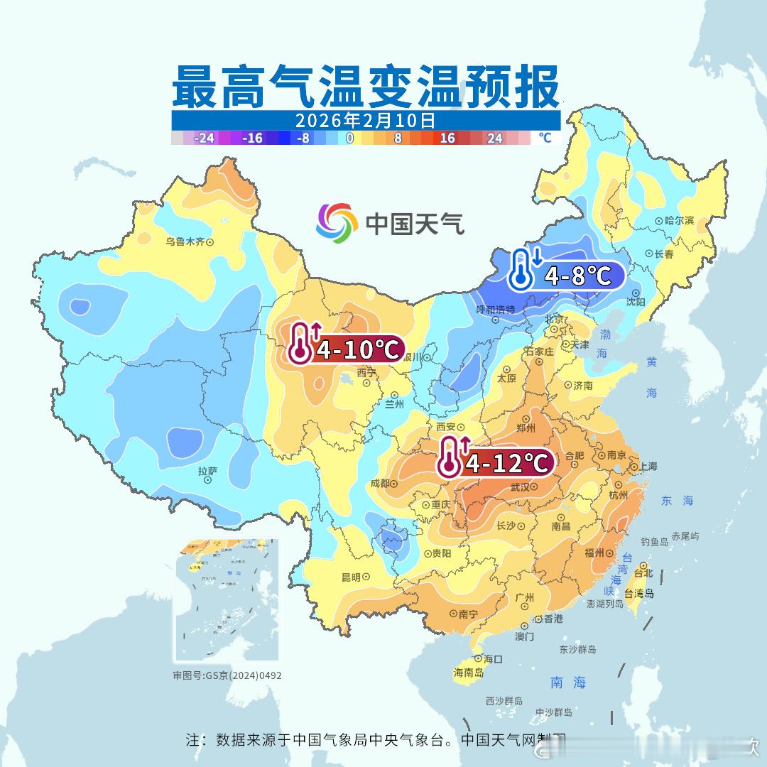 【震荡回暖】未来气温的大趋势毫无疑问是上升,并且总体上高于常年同期,部分城市气温还可能创出今年以来的新高。但上升的过程,依然曲折,中间还会夹杂冷空气的降温。明天因为阴雨向东发展,华中多地会有降温。最高气温10℃线被压制在湖南北部,后天10℃线大幅向北推进到河北南部。