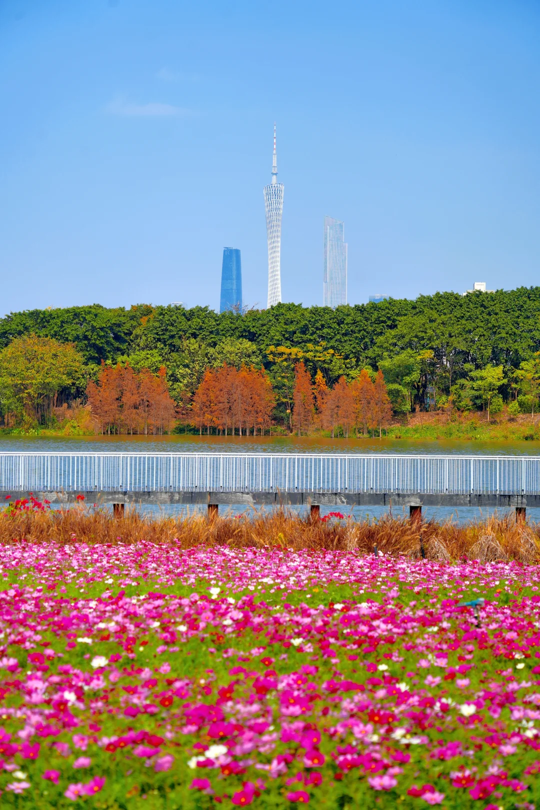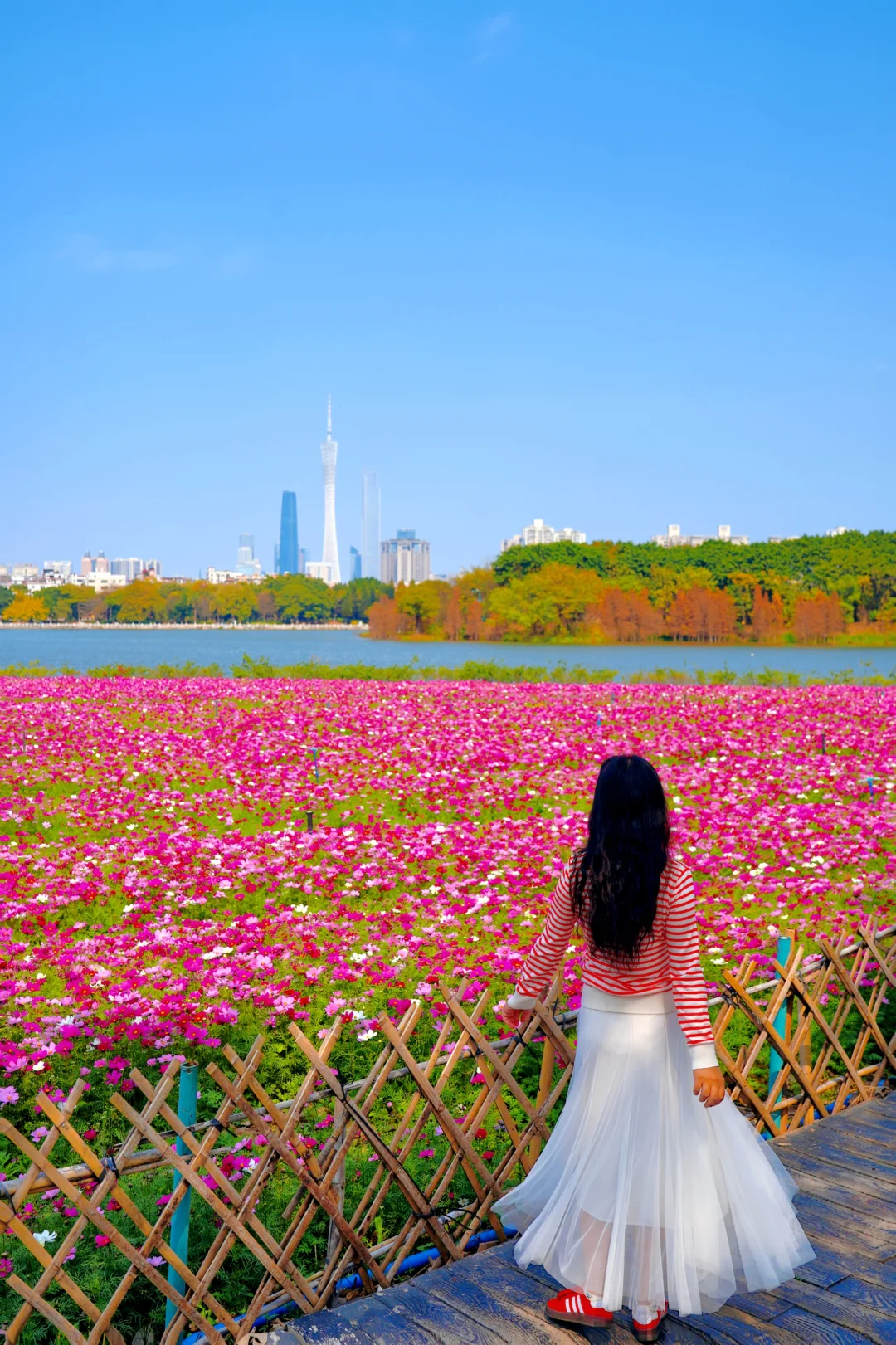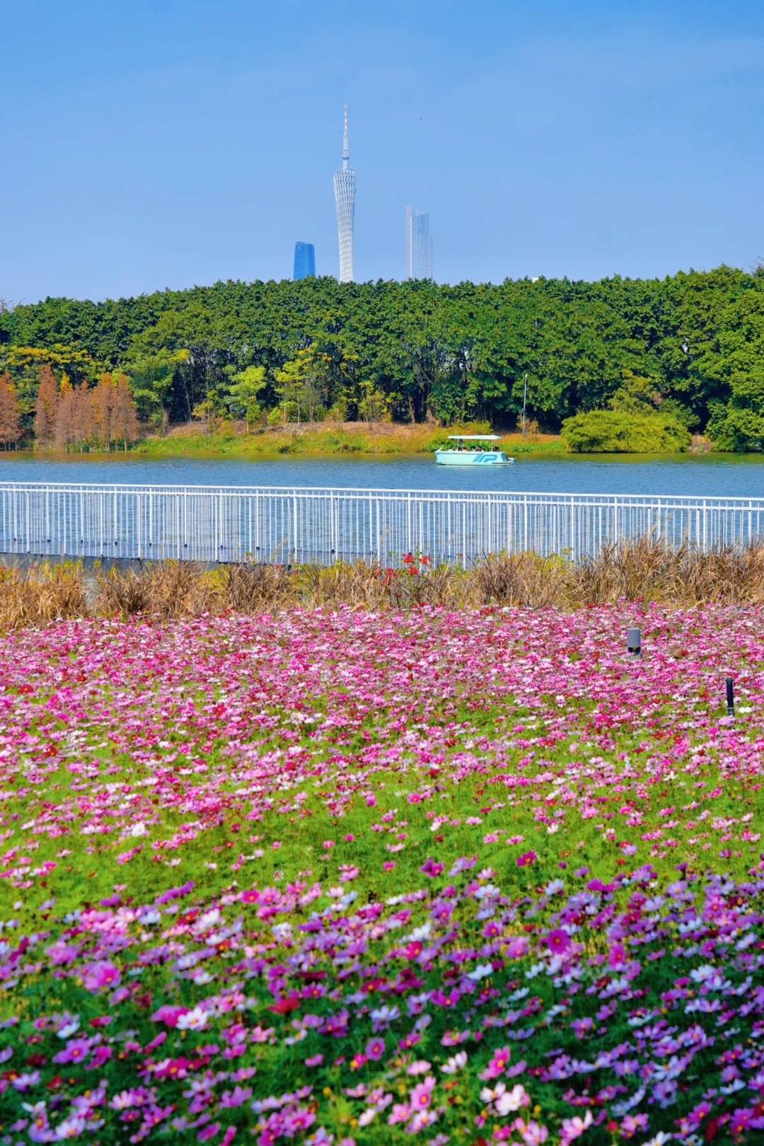 海珠烟水浸云纱,忽有高原万里霞。 粉浪扶风春造影,翠堤浮岛鹭作家。 海珠湖的花畔塔影用一场盛大的格桑花海 拉开了春天的序章! 格桑花海在微风轻抚间摇曳 远处游船划过,带起波光粼粼 寻个树荫坐会,真的好治愈! - 📸游玩小tips ①、大塘地铁站B出口出站过桥,往右手边走能更快的走到花畔塔影拍到格桑花海与广州三件套 ②、目前花间步道有围栏围起,不能走进花海里拍照 ③、尽量挑个蓝天白云的好天气去,毕竟阳光是最好的滤镜嘛 - 📍海珠湖公园—花畔塔影 🎟门票:免费 🚇地铁:3号线「大塘」B出口