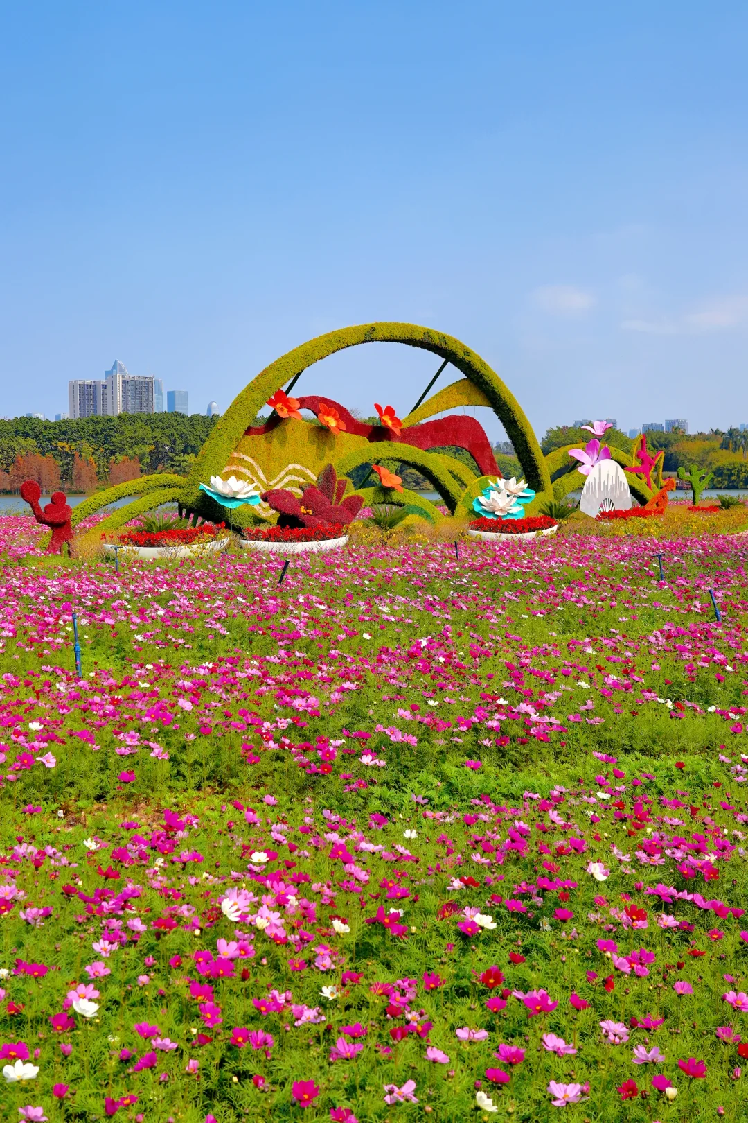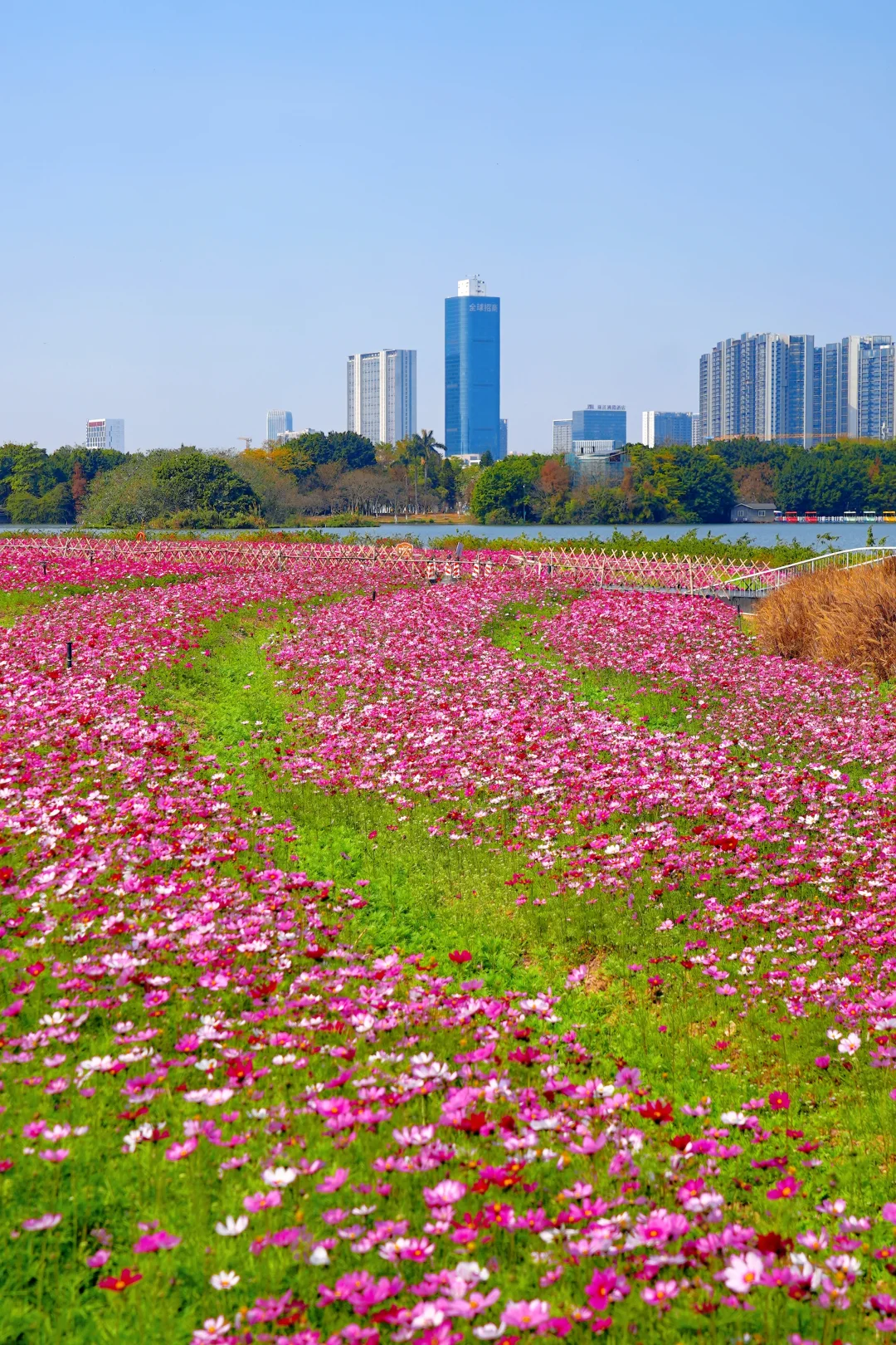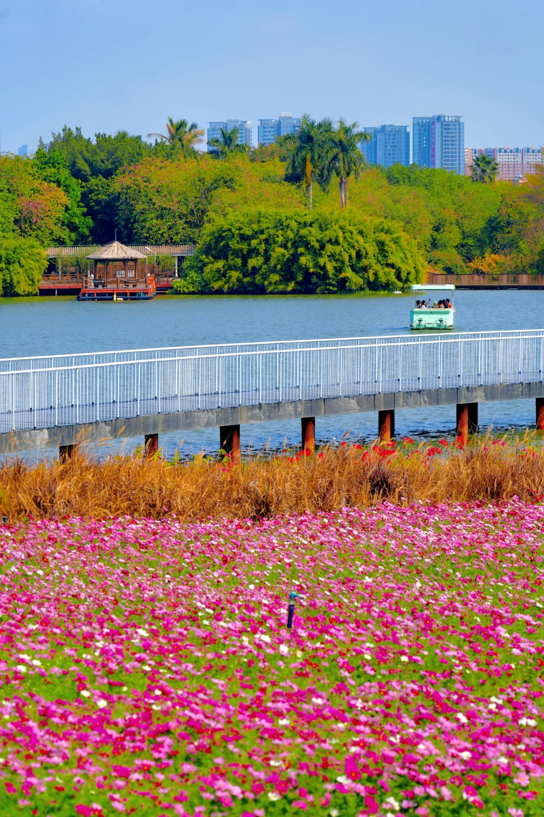 海珠烟水浸云纱,忽有高原万里霞。 粉浪扶风春造影,翠堤浮岛鹭作家。 海珠湖的花畔塔影用一场盛大的格桑花海 拉开了春天的序章! 格桑花海在微风轻抚间摇曳 远处游船划过,带起波光粼粼 寻个树荫坐会,真的好治愈! - 📸游玩小tips ①、大塘地铁站B出口出站过桥,往右手边走能更快的走到花畔塔影拍到格桑花海与广州三件套 ②、目前花间步道有围栏围起,不能走进花海里拍照 ③、尽量挑个蓝天白云的好天气去,毕竟阳光是最好的滤镜嘛 - 📍海珠湖公园—花畔塔影 🎟门票:免费 🚇地铁:3号线「大塘」B出口