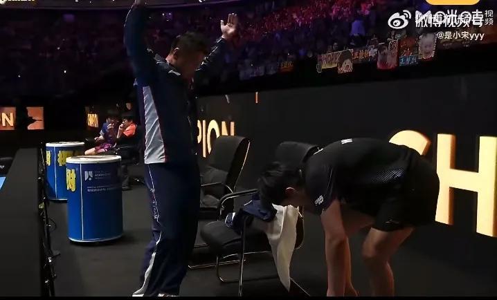 王楚钦夺冠后,和王皓指导一起兴奋庆祝[赞][笑哭]! 王皓指导仿佛又年轻起来了,前两天有球迷大声喊王皓签名,王皓指导来个空手空气签名[捂脸],今天王楚钦夺冠结束比赛,看台上全场观众大喊“王楚钦你最棒”,兴奋激动的王皓指导高举双手鼓掌回应,还伸出双臂示意观众继续呼喊。 虽然海口亚洲杯是洲际赛,但王楚钦和王皓指导也真的压力很大,恭喜王楚钦,把嚣张咆哮的张本智和打得时不时低头、抱头下蹲,估计比赛结束也会哭上一场[捂脸]。