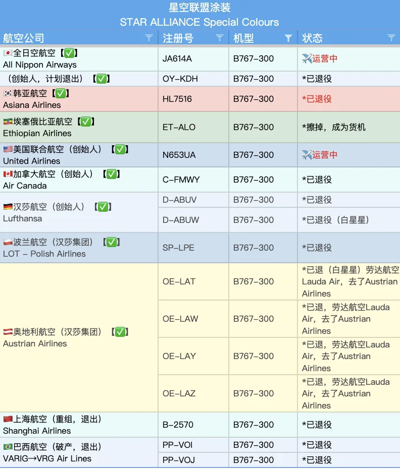 心血来潮,看看全世界有多少架波音767-300ER这个机型的星空联盟彩绘飞机,于是就有了这一篇