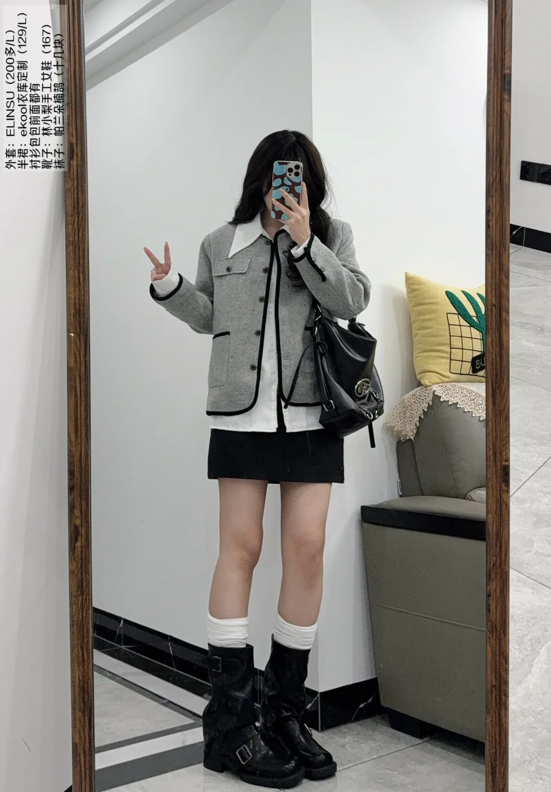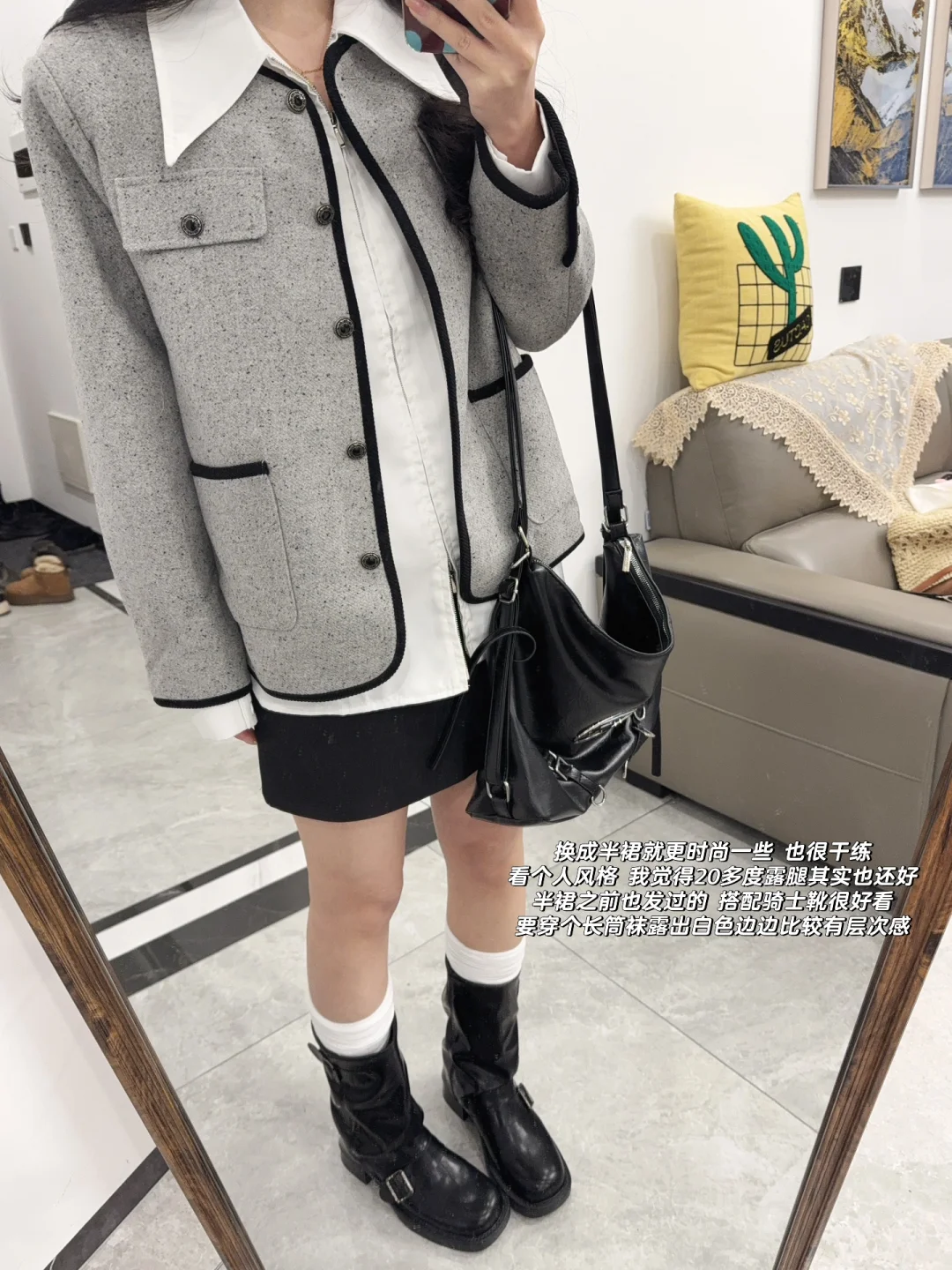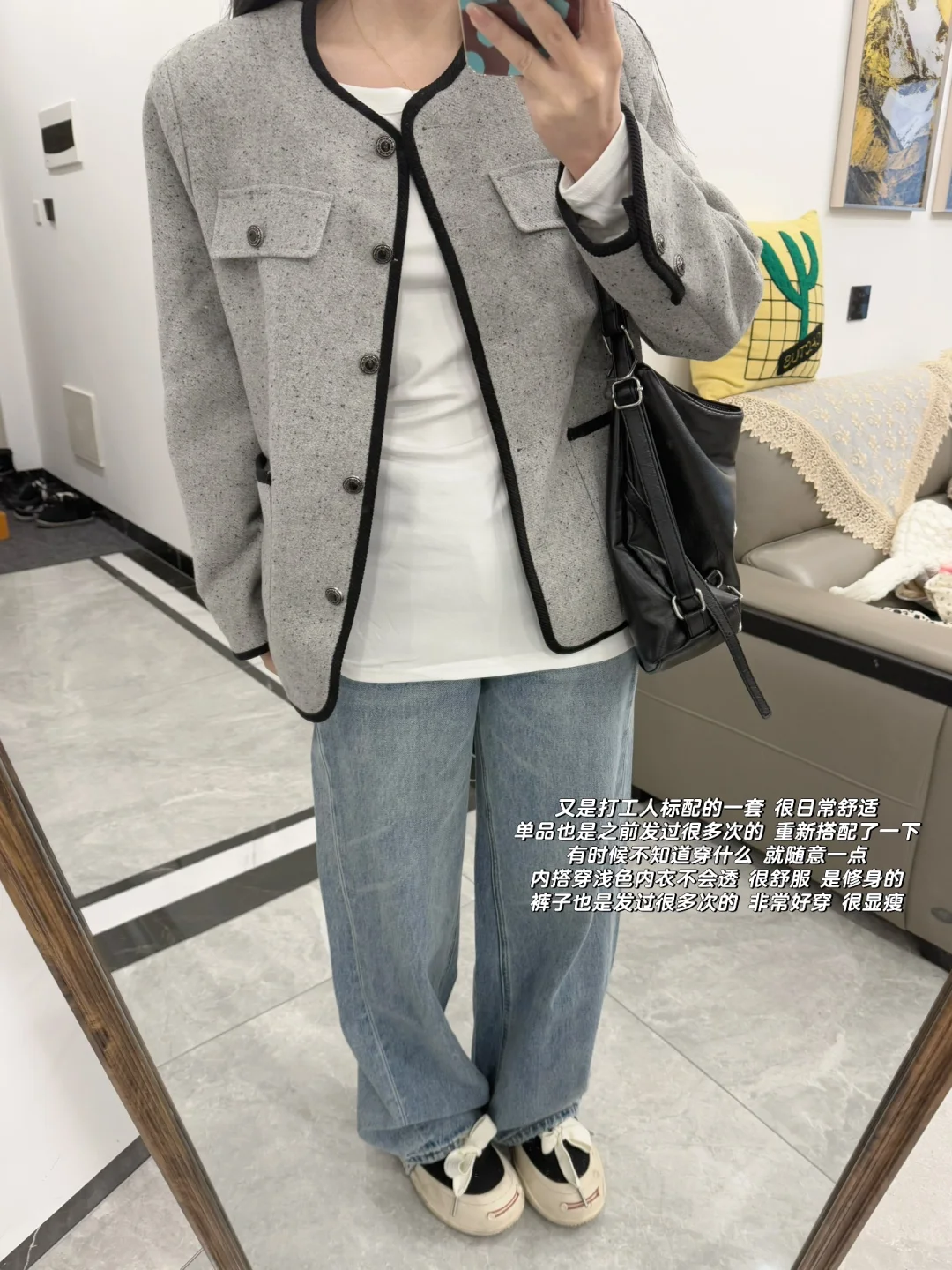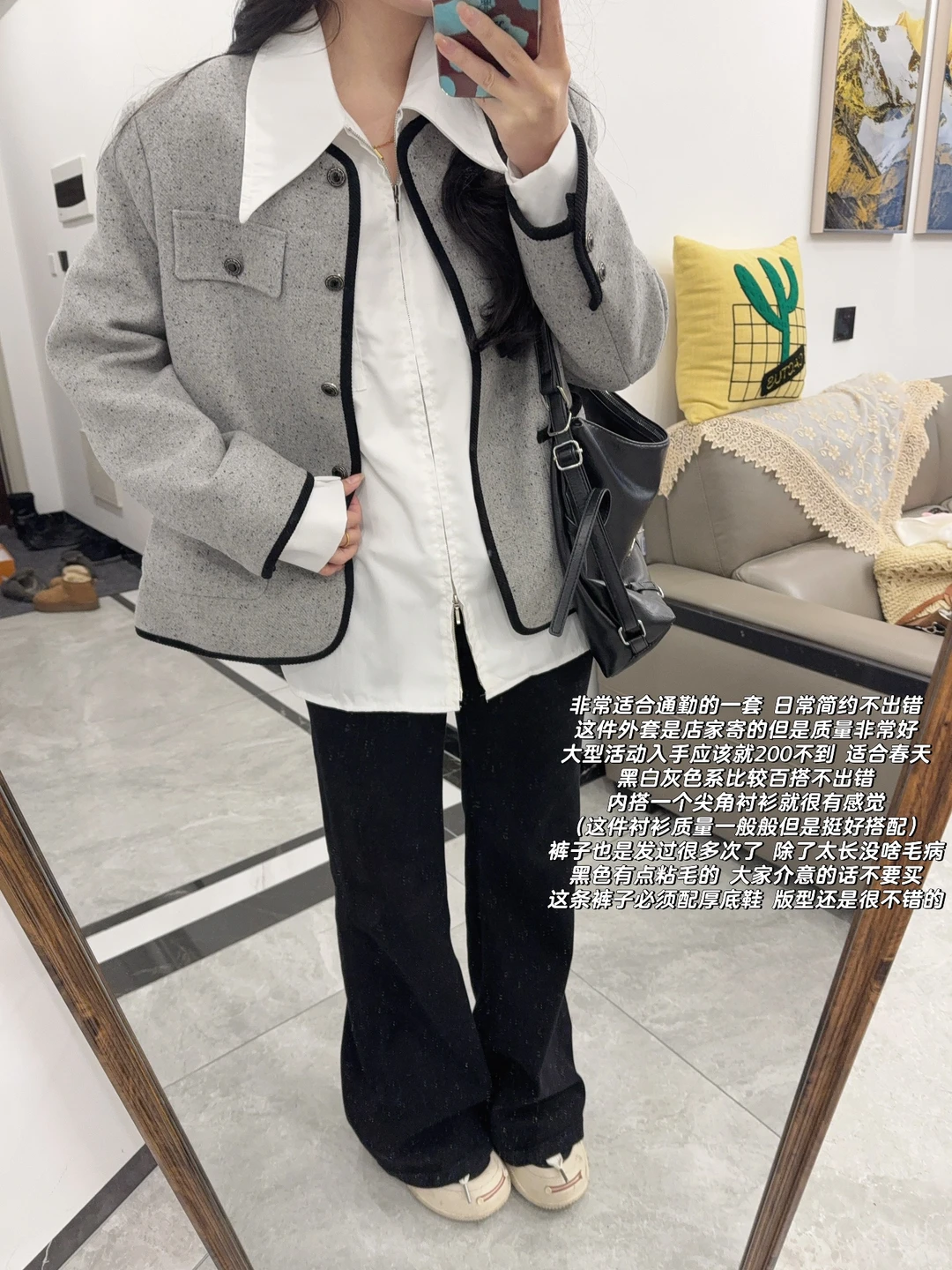 小香风外套的内搭可以考虑搭配衬衫/长袖/高领打底