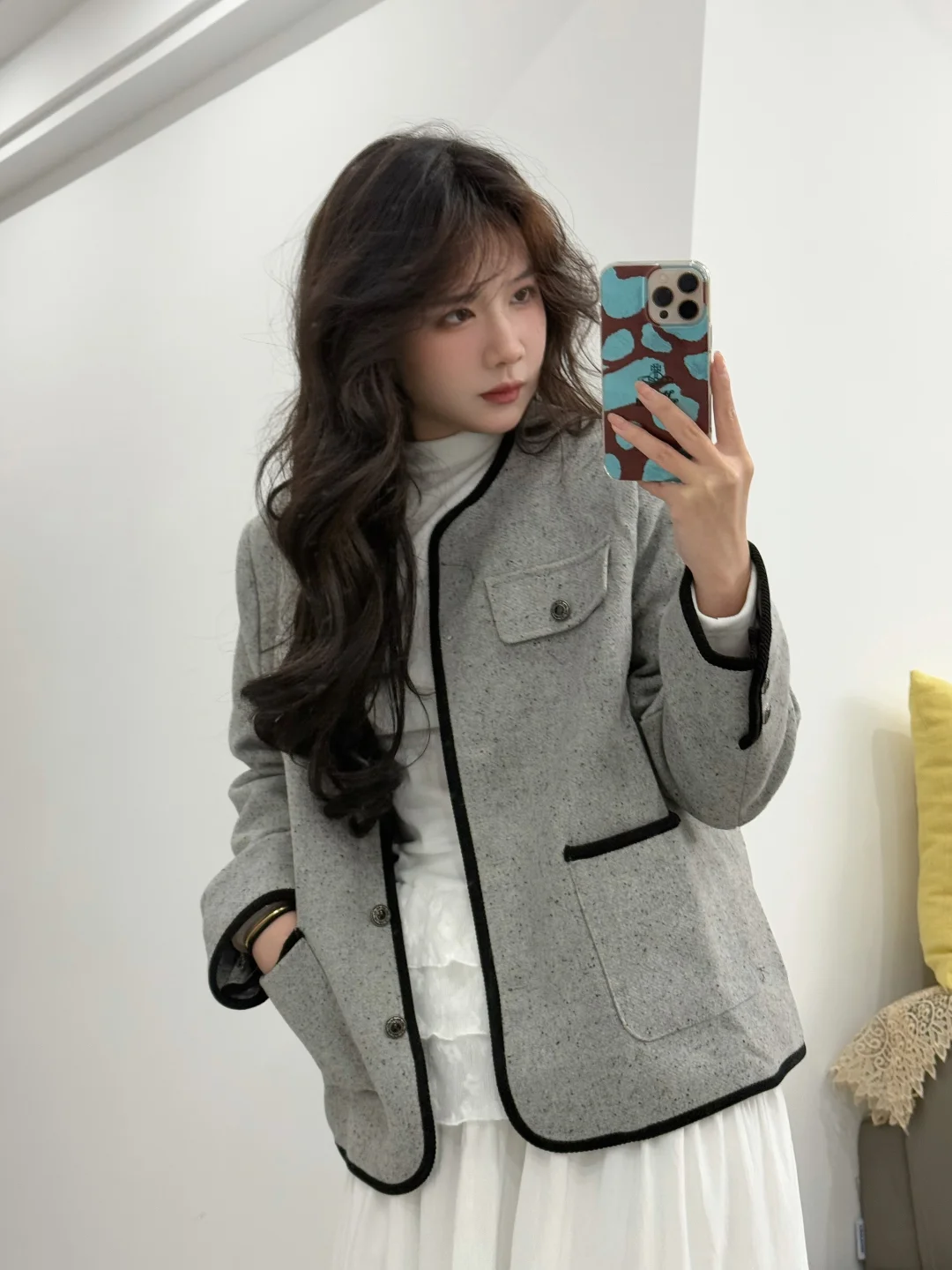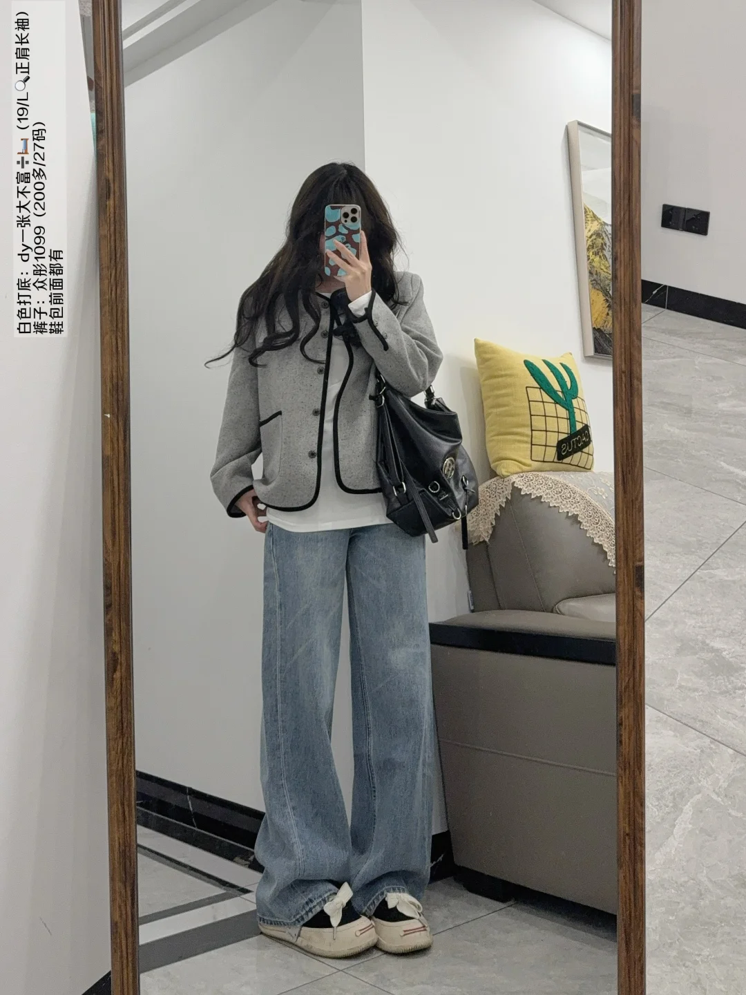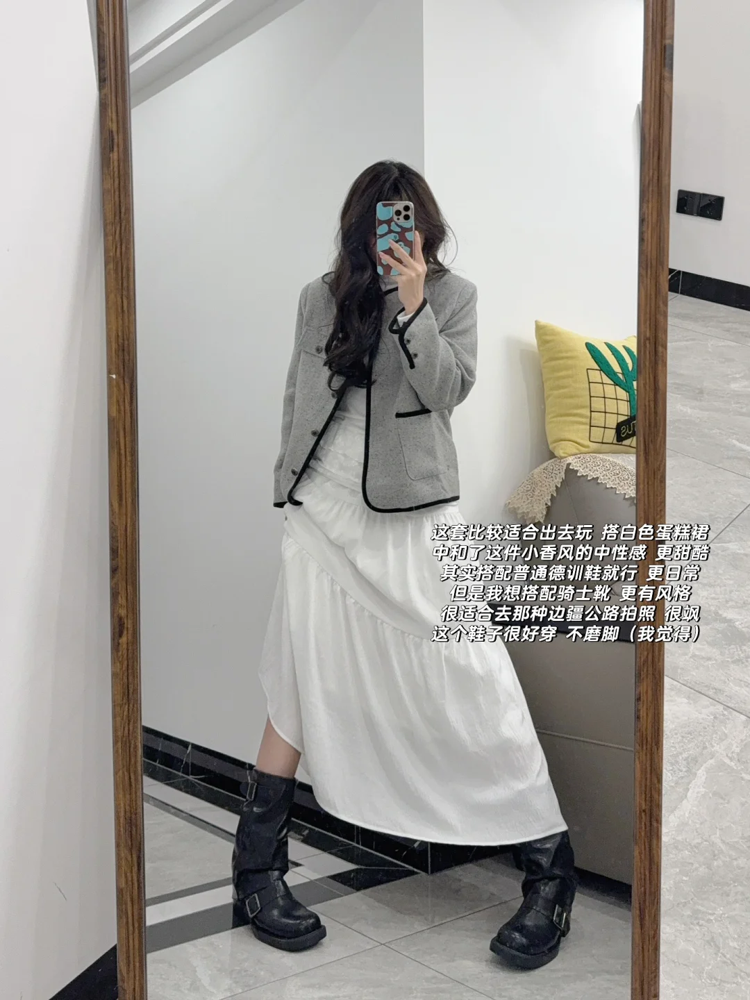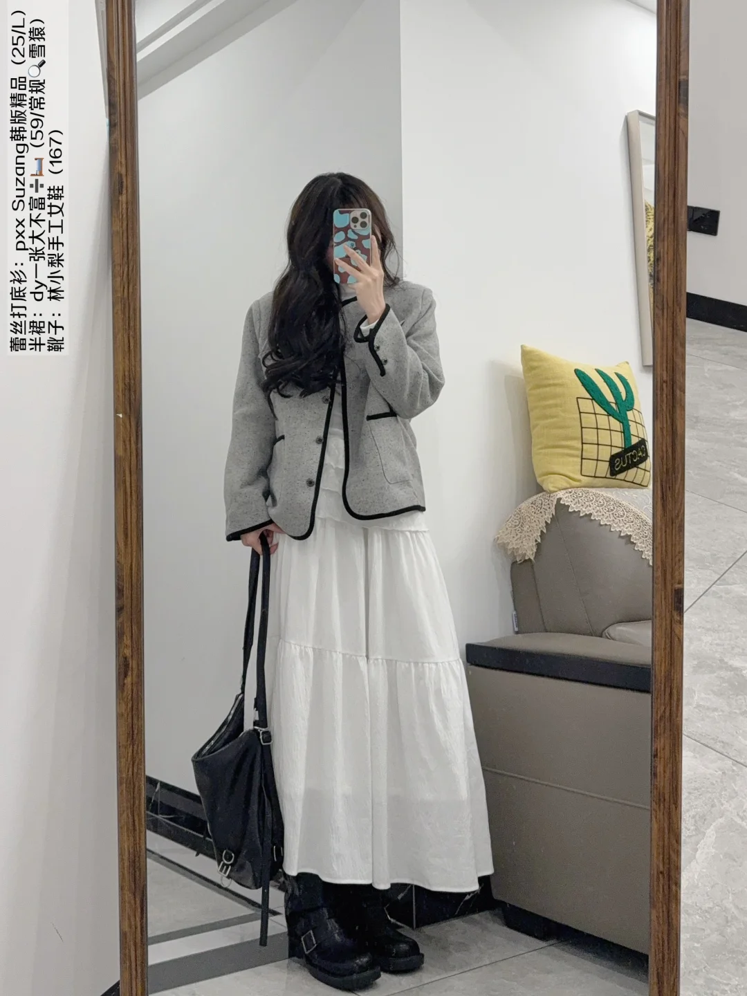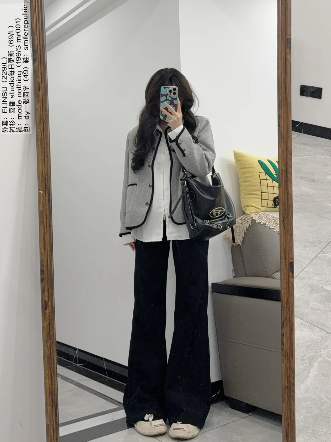 小香风外套的内搭可以考虑搭配衬衫/长袖/高领打底