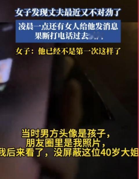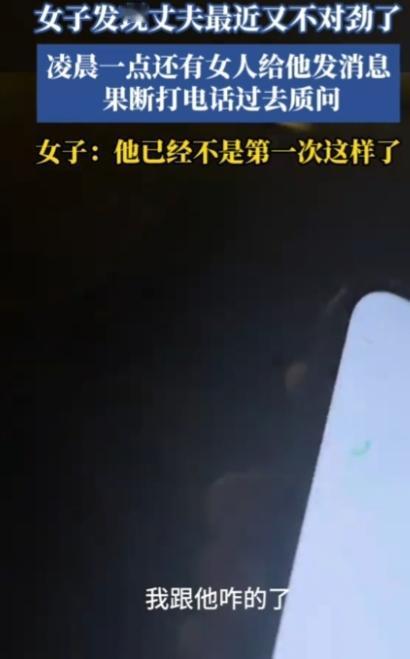 出轨这事,要从源头解决! 黑龙江,一女子发现丈夫最近又不对劲了,凌晨一点还有女人给他发消息,果断打电话过去质问。没想到女人很是嚣张,理直气壮,“什么玩意啥时候开始的,你不得问他吗?我咋的了,我跟他咋的了?” 还口口声声说,不知道男方有老婆有孩子。男方头像是孩子,且朋友圈里有女子的照片,这40岁的大姐知三当三啊!太猖狂了! 出轨这事,要从源头解决,不然治标不治本。小三是猖狂,是坏,但劈腿一直都不是一个人的事情,这种情况找小三有啥用?男人如果想要出轨,没有这个女人,还有那个女人。与其没完没了对付小三,还不如及时止损。 苍蝇不叮无缝的蛋,这蛋已经坏了,扔掉吧!