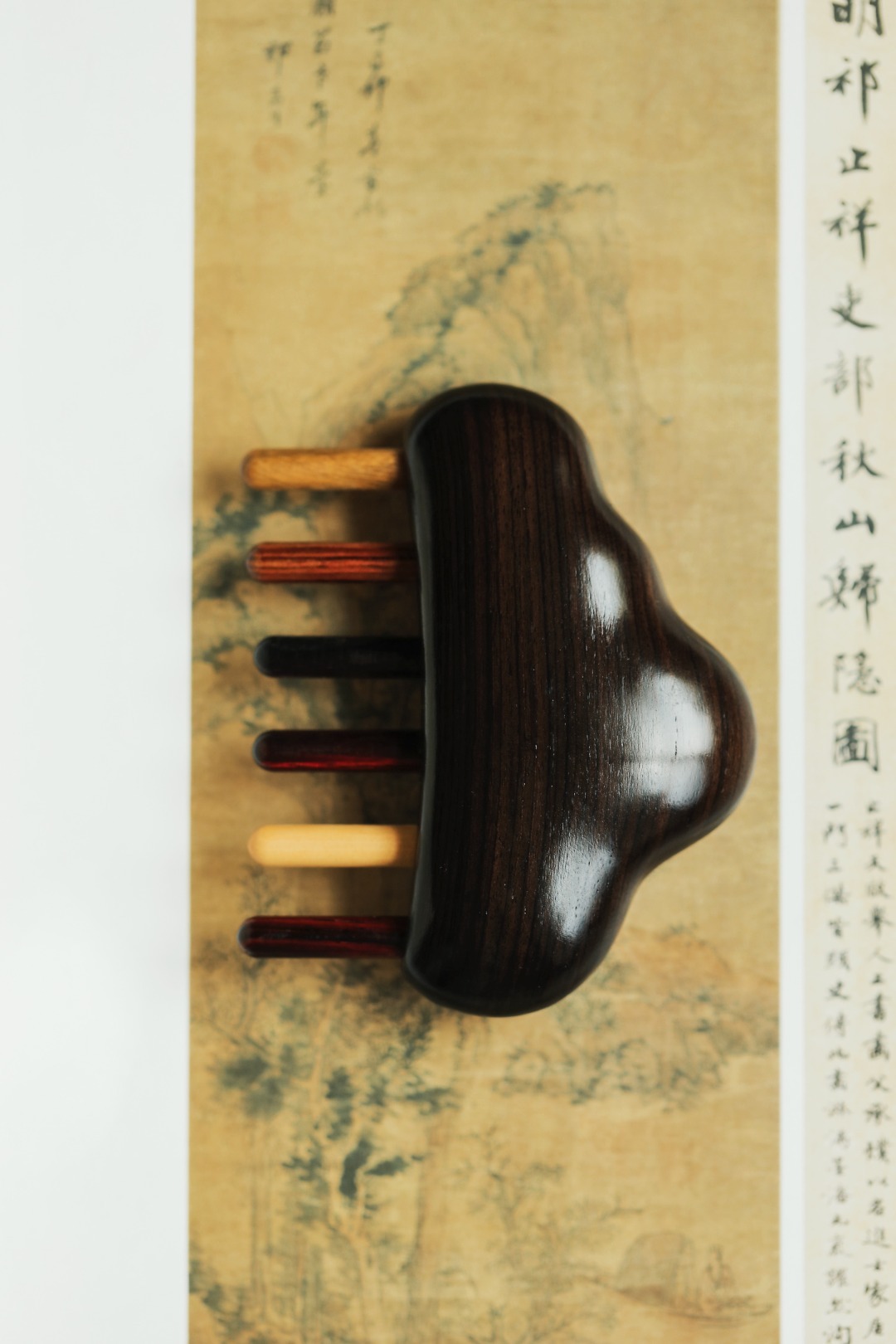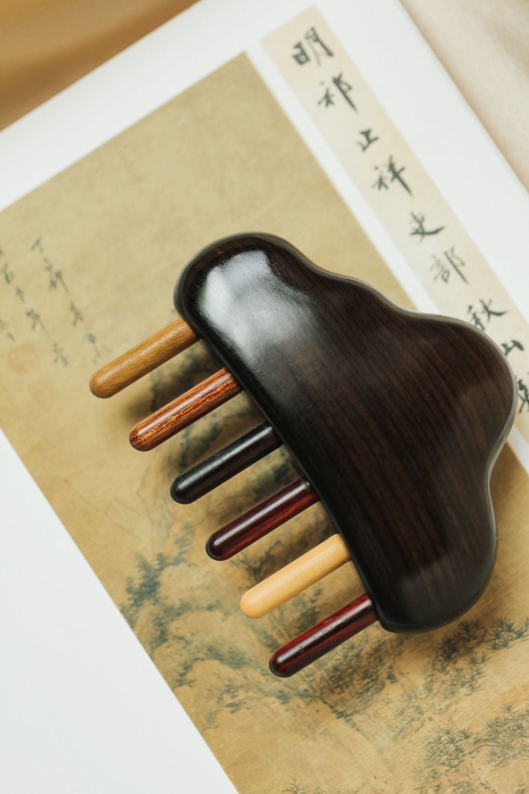 紫光檀|云朵·按摩梳择紫光檀老料制,梳齿多种材质榫卯镶嵌,圆润饱满,弧形设计