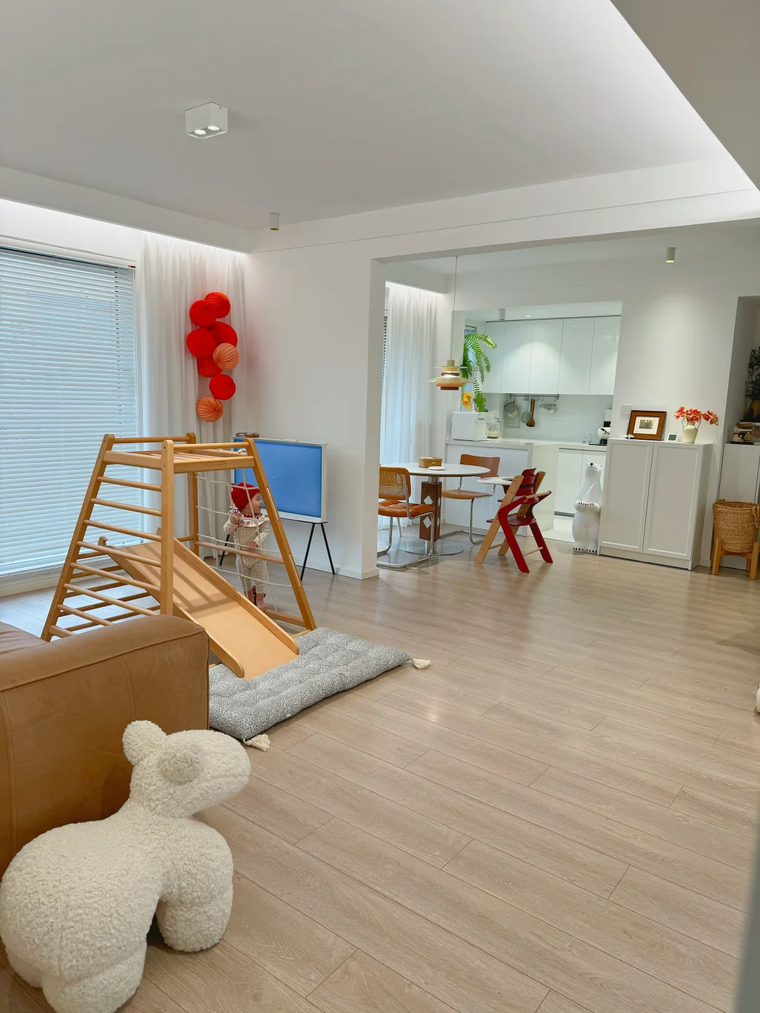 客厅让给了孩子没有过多的装饰也没茶几 就这样简简单单的住了四年