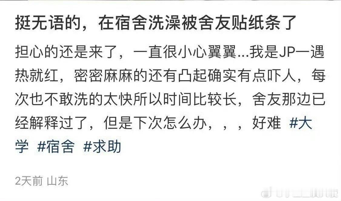 挺无语的,在宿舍洗澡被舍友贴纸条了