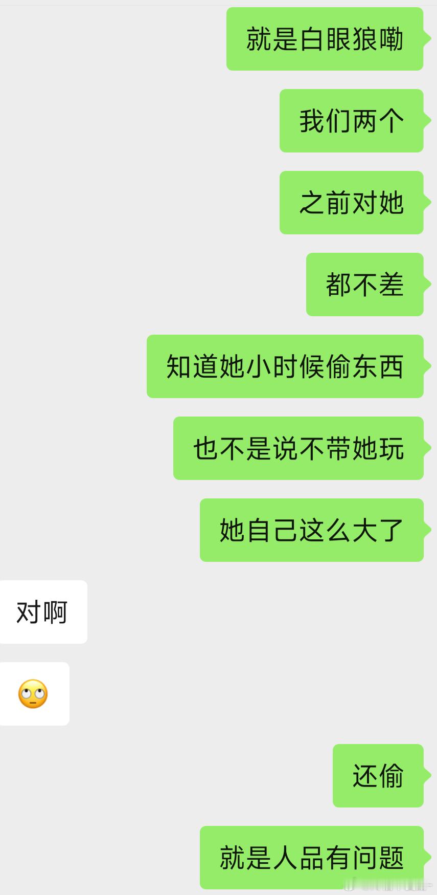 我表妹 今天去她家 全程没出来跟我们打招呼 我家里人非说我跟我姐姐对她不好 之前过年把我姐姐苹果手机偷了 被发现后记恨上我们了,,,现在理都不理我们 那我们能咋办 因为这个事被说了一个晚上 因为是姐姐 让我们包容