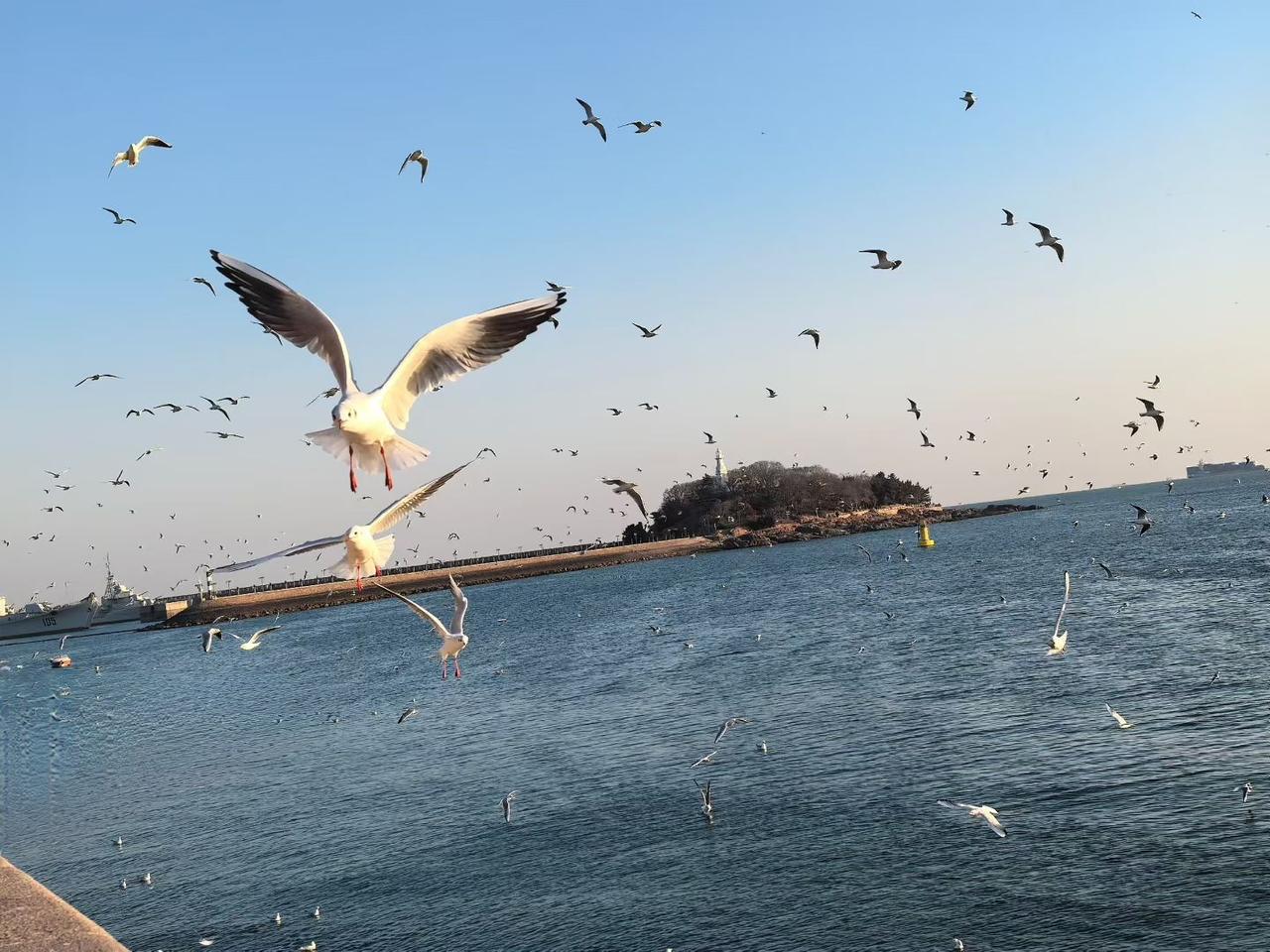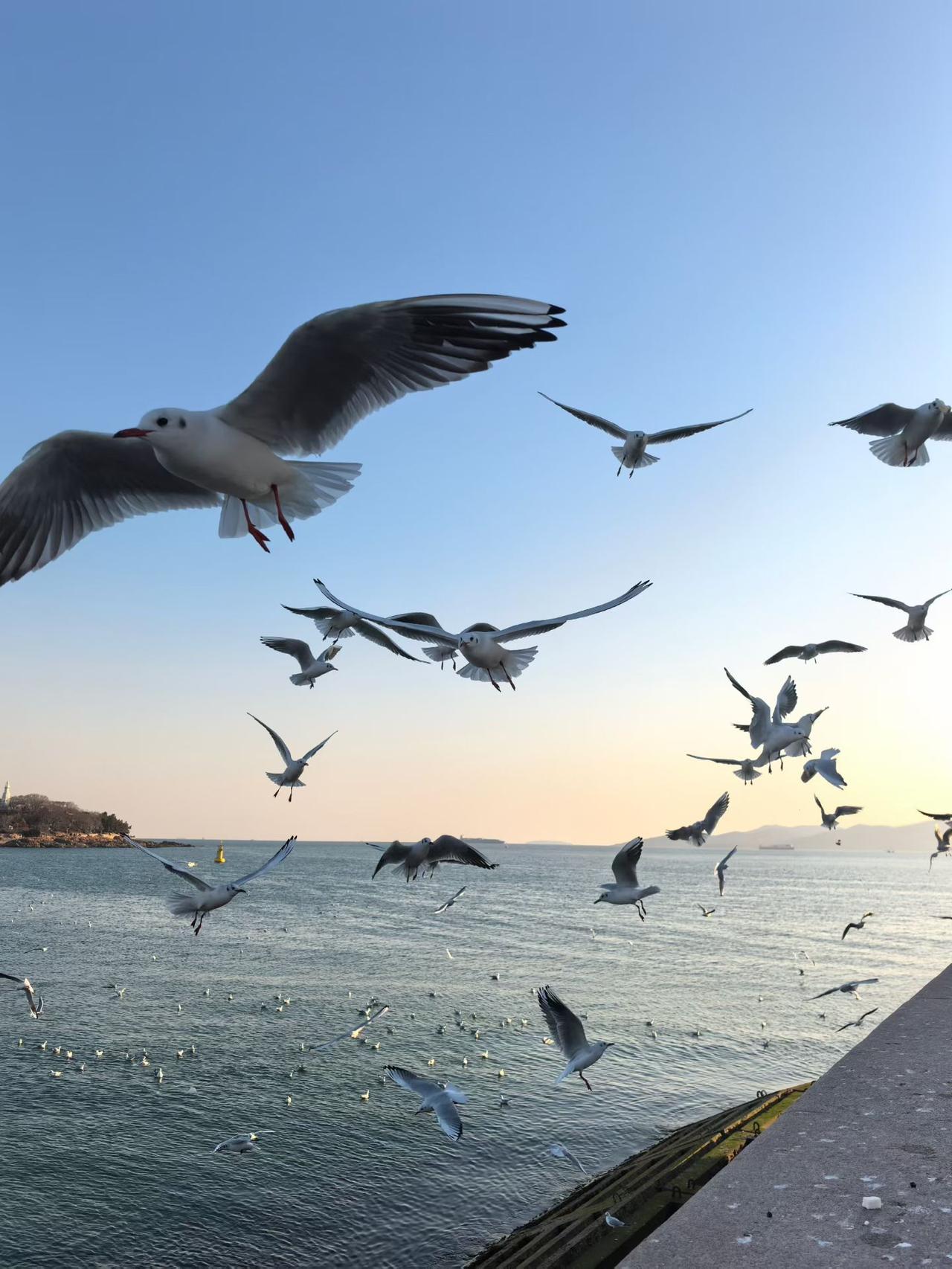 每次看到海鸥飞翔,就觉得那是自由的象征。想起12月去北戴河看海上日出,虽然天气冷,但安静的氛围让人沉醉。清晨,太阳慢慢升起,海面上波光闪闪,海浪轻唱着歌。 一群海鸥在空中肆意地飞,它们时而高飞,时而低旋,仿佛在与海风嬉戏,尽情享受着这美好的时刻。那场景,真的超治愈,让人觉得世间一切都如此值得。海鸥没有束缚,随心逐风,这样的时光太让人羡慕了。我站在海边,看着它们,感觉自己的烦恼都被海风带走了。