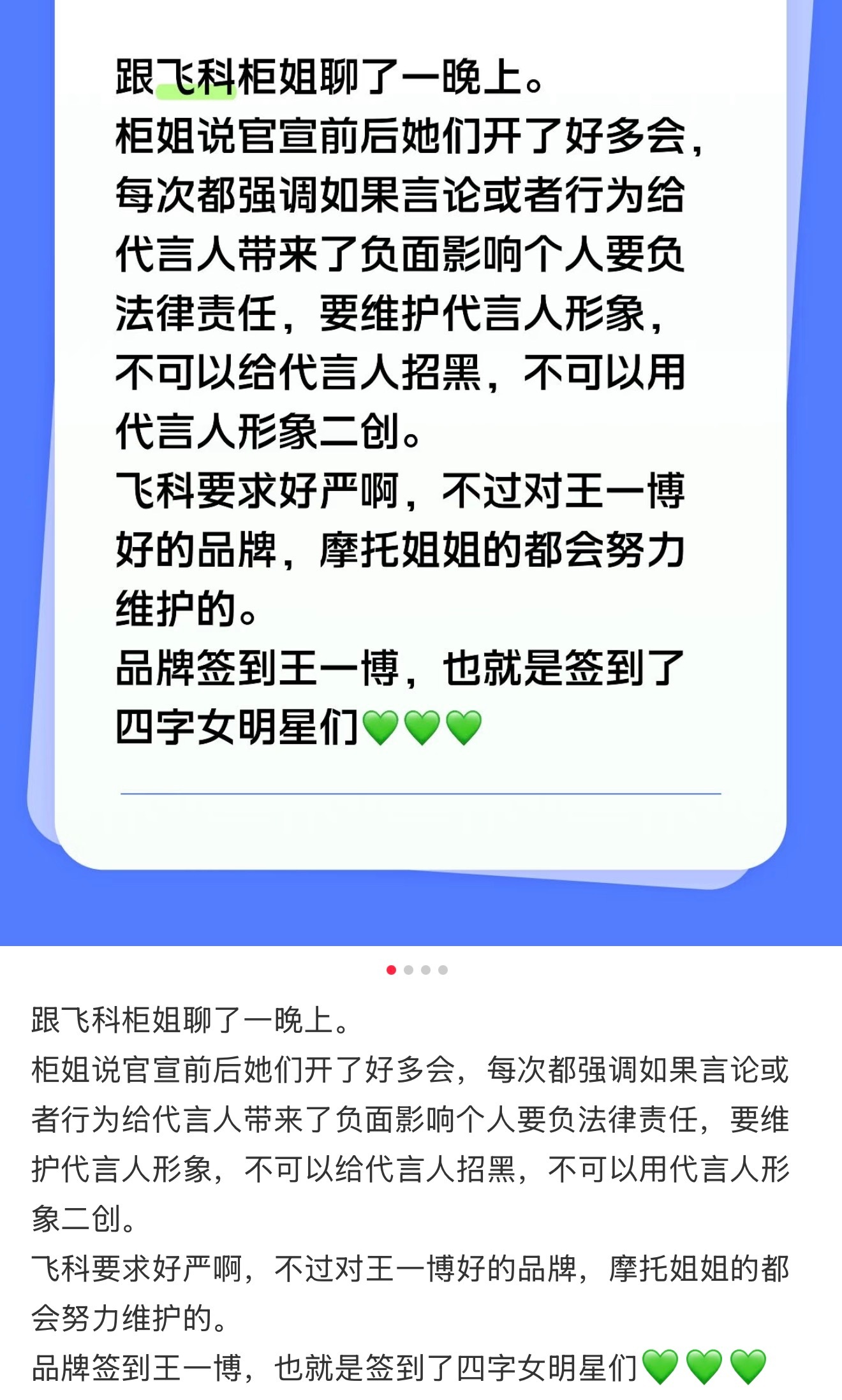 商务霸霸一直都尊重摩托姐姐和王一博飞科还开了好多次会来强调维护代言人王一博形象