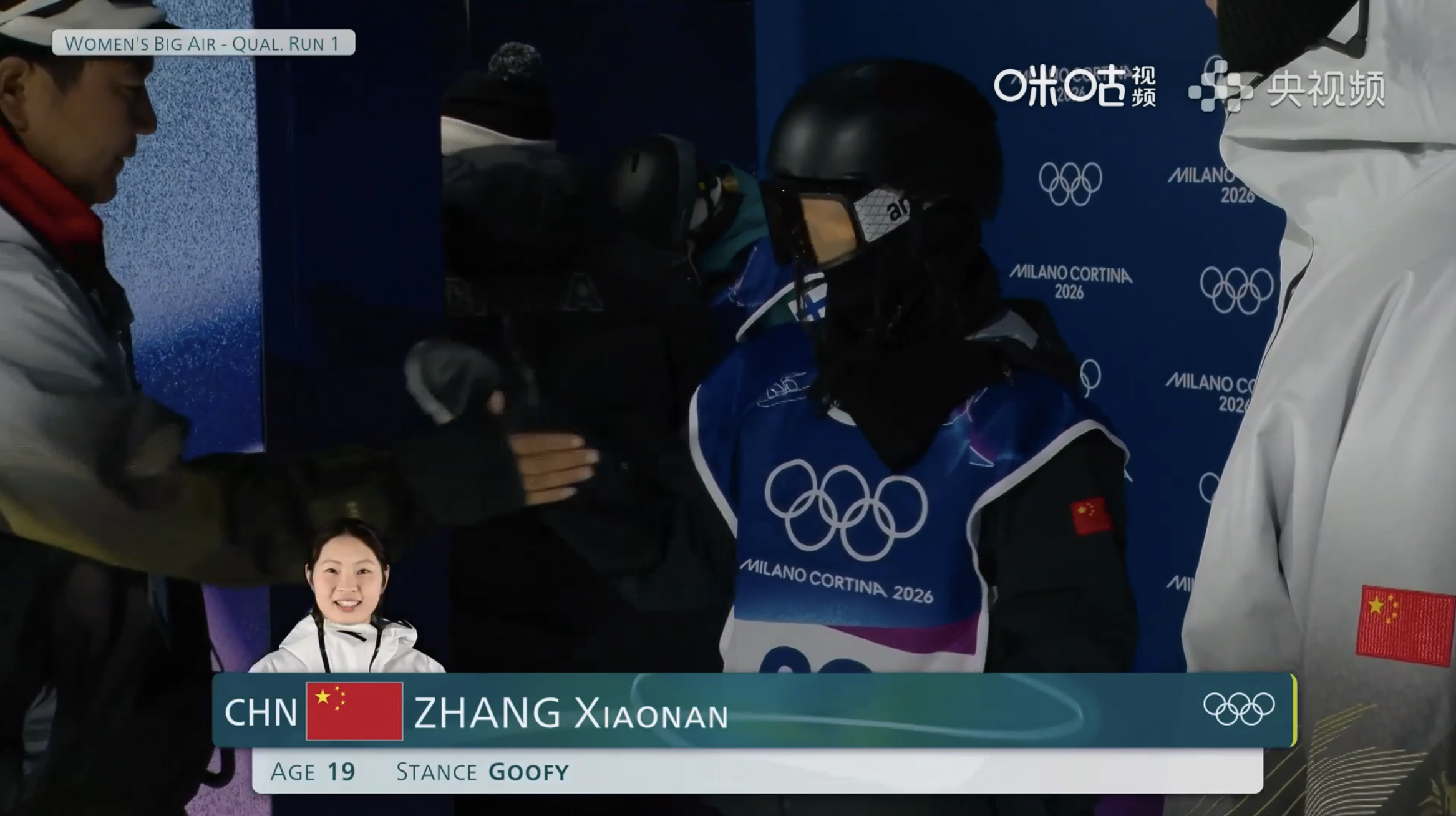 米兰冬奥会单板滑雪女子大跳台预赛第一跳,🇨🇳中国19岁小将张小楠发挥稳定,得分:79.75,暂时排名第7。