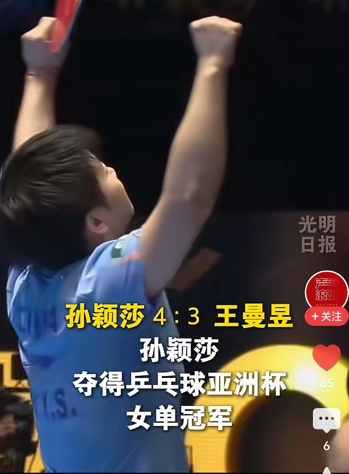 孙颖莎昨天夺的冠军含金量不高!是连胜队夺的[捂脸][捂脸][捂脸][捂脸][捂脸][捂脸][捂脸] 哈,孙颖莎昨天不体现大格局,高情商了,太不讲人情世故了,打个球也不知道懂点事儿,有分寸感了,昨天竟然接连击败她的师妹蒯曼,进决赛,击败她的师姐王曼昱首夺亚洲杯女单冠军! 粉子常挂在嘴边的是,其她运动员胜了队友,夺得了冠军,含金量就不高,那么孙颖莎昨天夺得的亚洲杯冠军含金量如何呢! 孙颖莎的大格局,高情商昨天那里去了?黑子粉们常说,只要金牌能留在中国,五星红旗让谁升起都行,孙颖莎见了队友心就软了,球技也保密了,就放弃个人梦想,不以多冠为重点,而享受过程了,可她昨天连胜的是两位队友,怎么下得去手呢!更何况王曼昱昨天中午击垮势猛的张本美和,伤了元气,孙颖莎为什么还硬拖,将比赛拖止决胜局,才以2分之差胜王曼昱呢!王曼昱不是被击败的,而是被拖败的!两人明知想胜对方没那么容易,都往决胜局拖,到最后谁体力不支,谁败,这种套路两人昨天演义的淋漓尽致!! 利用黑子粉们常说的,如果怎么样,假如怎么样,如果中午是孙颖莎和张本美和半决赛,假如王曼昱和蒯曼半决赛,两位晚上再决赛,晚上的结果会如何呢!