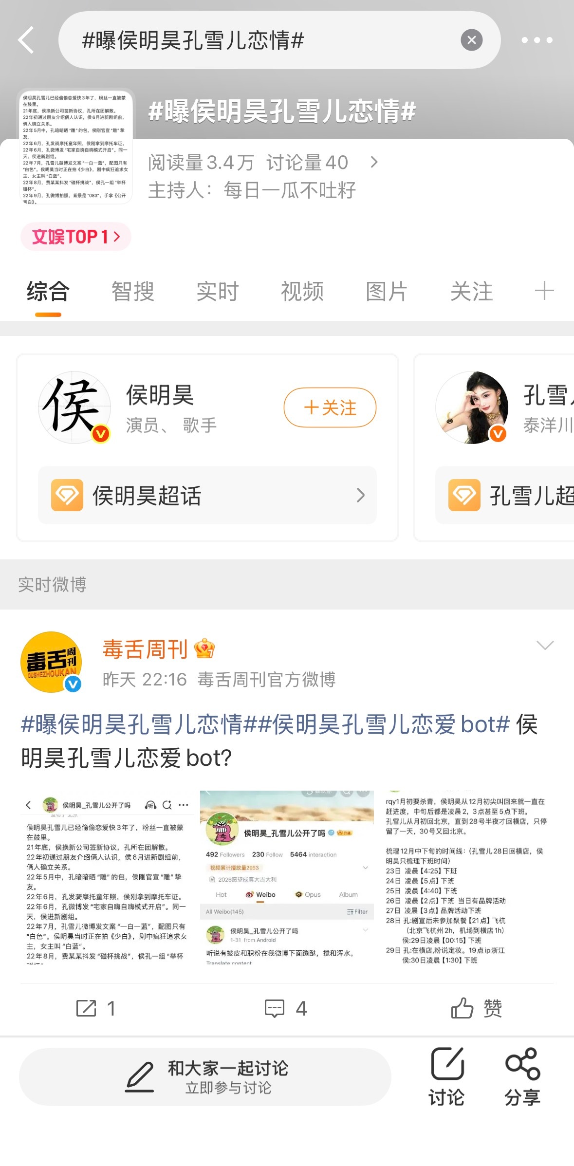 这就文娱第一了,好诡异…曝侯明昊孔雪儿恋情