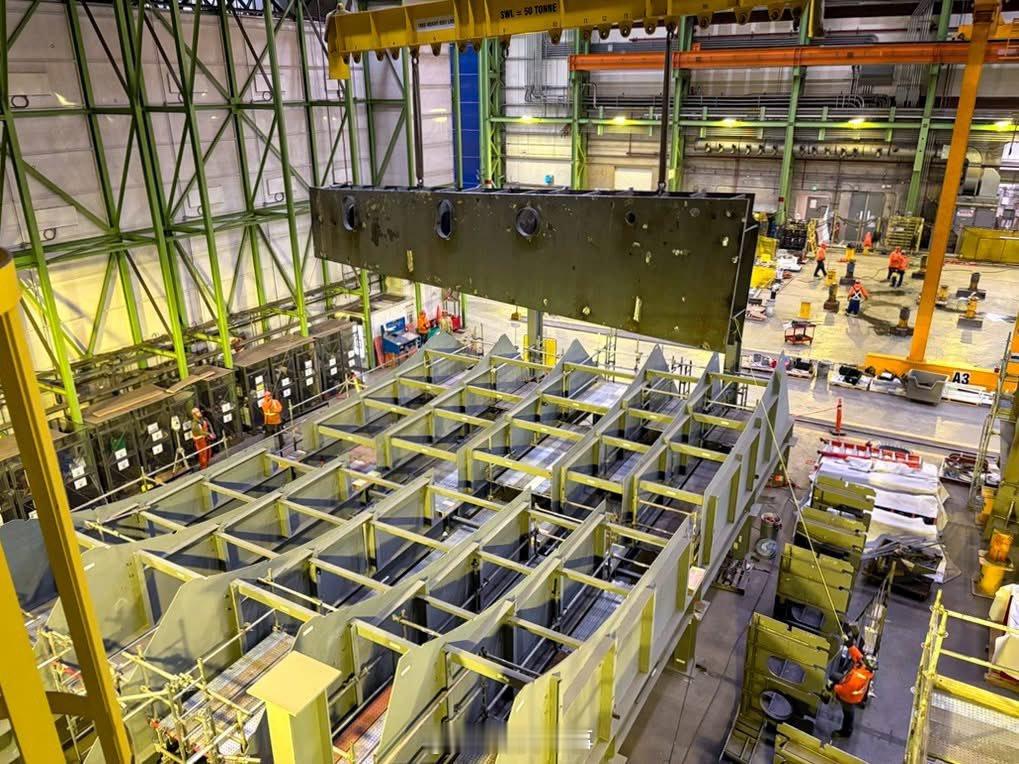 每天认识一件兵器全球武器装备盘点烽火问鼎计划 2026 年 2 月 8 日,加拿大海军)“里弗”级驱逐舰“弗雷泽”号(DDGH在哈利法克斯的欧文造船厂,其龙骨单元的船首斜体已完工,并移入夹具开始建造整个单元。