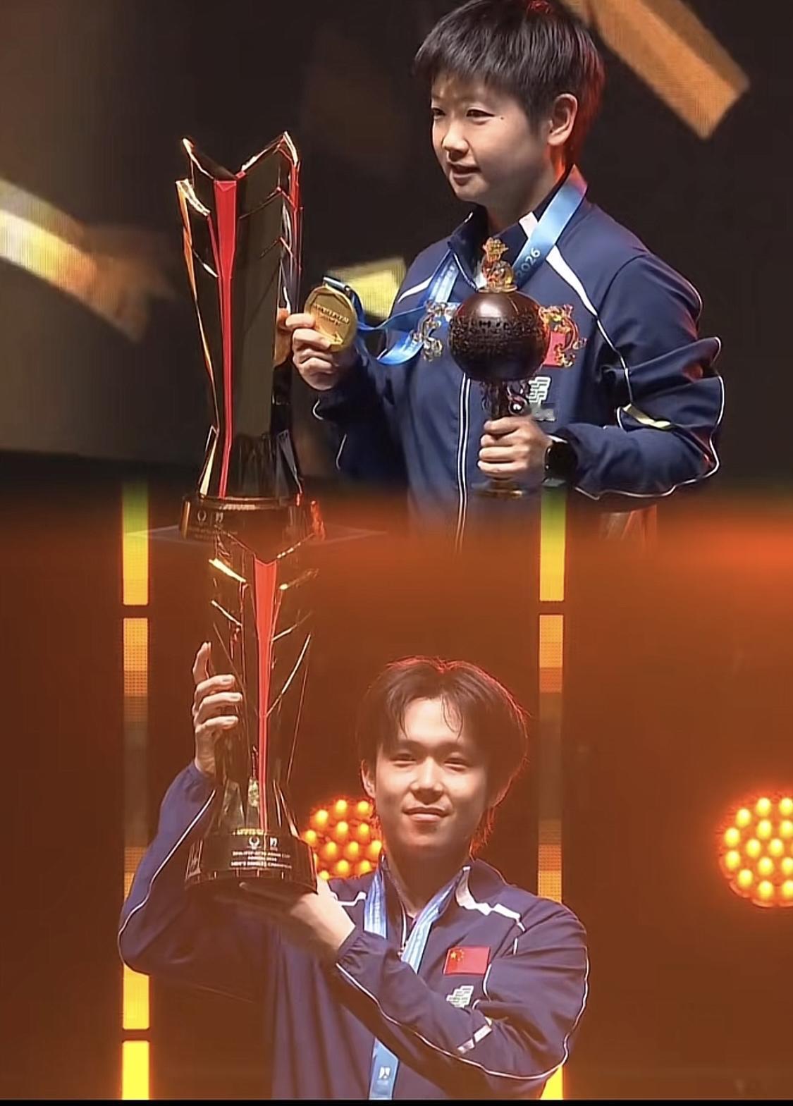 顶峰相见莎头2026年的亚洲杯冠军。2月8号女子金银铜牌,三面五星红旗🇨🇳一起升起,男子王楚钦夺冠!莎莎和曼玉鏖战七局,第七局的比分打到11平,莎莎力挽狂澜,赛后莎姐说是幸运之门向她召唤,其实还是实力的较量啊!男子这边王楚钦太猛了,以11 - 8、11 - 6、9 - 11、11 - 7、11 - 5的比分横扫张本智和,实现男单亚洲杯两连冠,对阵张本14胜3负、82.4%的对战胜率,稳稳的世界第一气场。莎莎也首次获得亚洲杯女子冠军,莎莎和曼玉以一金一银的亚洲杯成绩并列,海产姐妹共在决赛场上交手七次,莎莎目前以四胜排在榜首,永远的姐妹花永远的对手![爱慕][爱慕][爱慕]