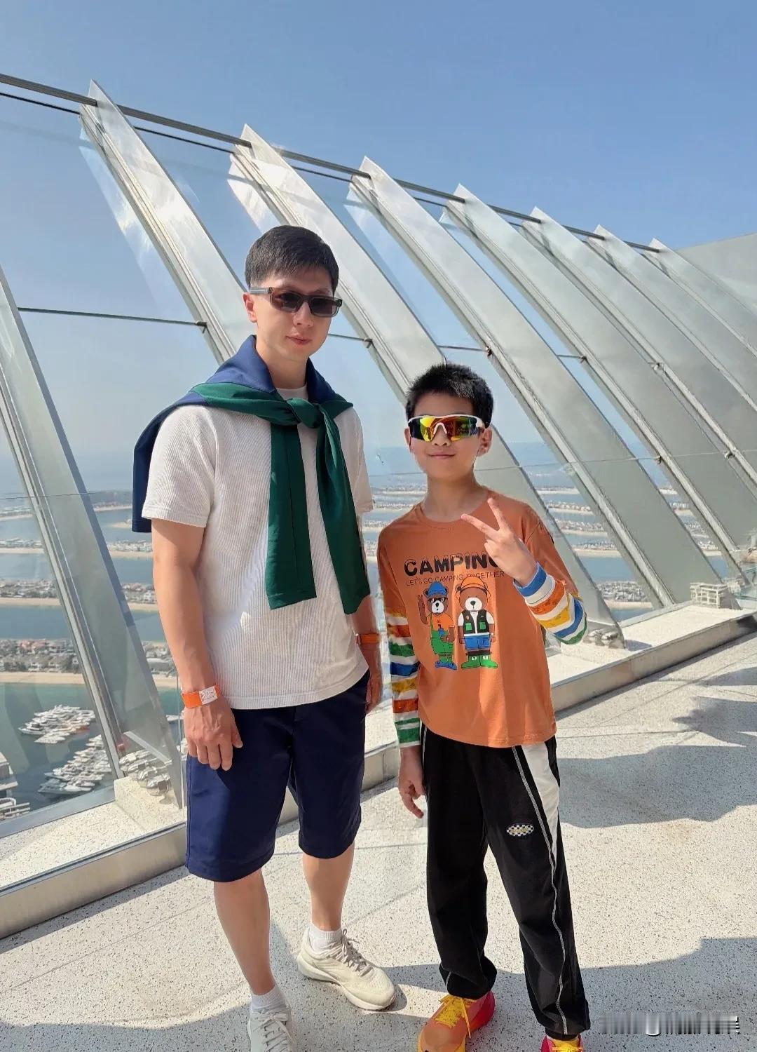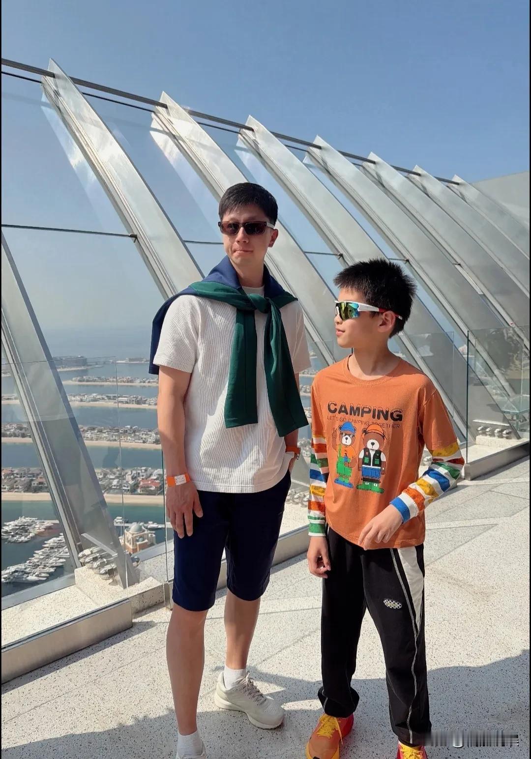 马龙在迪拜这造型,帅过男模啊! 他在迪拜的观景平台被人偶遇,穿着一件白色短袖配短裤,肩膀上还搭了一件绿色的毛线衣,戴着眼镜,个子高挑,肤色超级白,脸也很小,胳膊、腿上的肌肉线条紧致结实,看着阳光、清爽又帅气。 果然,有老婆的眼光加持,这时尚穿搭能力又上了一个台阶。 他们一家子都在迪拜度假,享受美好的幸福时光,“六边形战士”的生活好安逸![呲牙]