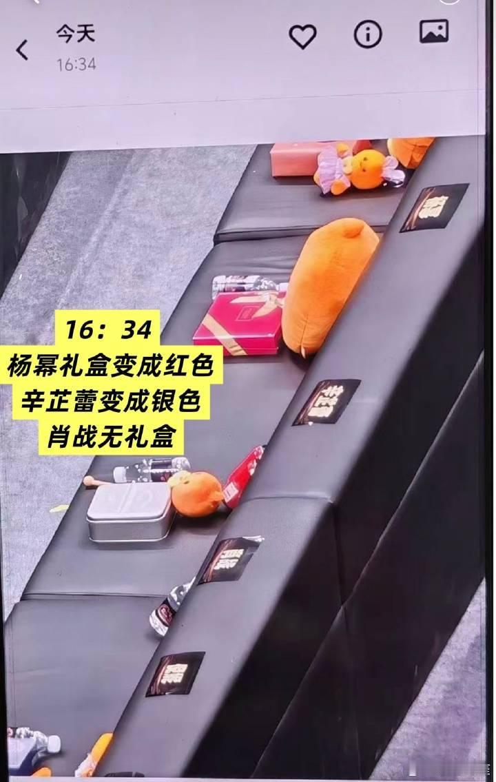 最无语的不光是偷走了1号的娃娃,还有为了不露馅把3号的礼盒和娃娃扔了,这是人家粉丝打投赢来的礼物啊。不仅把肖战发配4人座还就给一瓶水……微博之夜给所有艺人都准备了一个礼盒,一个娃娃,一瓶水,一个抱枕,肖战那个位置还额外有一个按摩锤,结果被偷的就剩一瓶水,到底是羞辱谁啊。微博会给他的king办一个这样离谱的羞辱仪式吗?这不是得罪人吗?哦别人都坐在位置上靠着靠枕玩娃娃开礼盒,肖战坐在沙发缝里或者倪妮腿上,尴尬了就喝水是吗