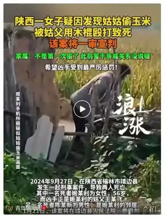 家人们!陕西这起案子看得人头皮发麻!75岁姑父因为姑姑偷玉米被侄女拍了视频,居然抄起胳膊粗的木棍活活打死亲侄女和路过的邻居!手机录像里木棍挥了12下,每下都往头面部砸,现场惨不忍睹! 更让人气炸的是,老头庭审时不仅毫无悔意,还指着死者家属破口大骂!辩护律师说他75岁该从轻,法院直接硬气回怼:“手段特别残忍,罪行极其严重,75岁不是免死金牌!” 一审死刑,现在居然还上诉了! 就为了几穗玉米,两条人命没了——55岁的侄女本来是想留证,74岁的邻居只是路过想报警,结果都倒在木棍下。最讽刺的是,姑姑自己都承认偷玉米了,姑父却为这点脸面犯下滔天大罪!网友怒了:“这哪是恼羞成怒,分明是冷血杀人魔!” (图片来自网络) 姑父姑夫 大伯对侄女 侄子状告姑姑 姑父侵犯侄女 偷玉米致命案 叔侄杀夫案 母亲被砸案