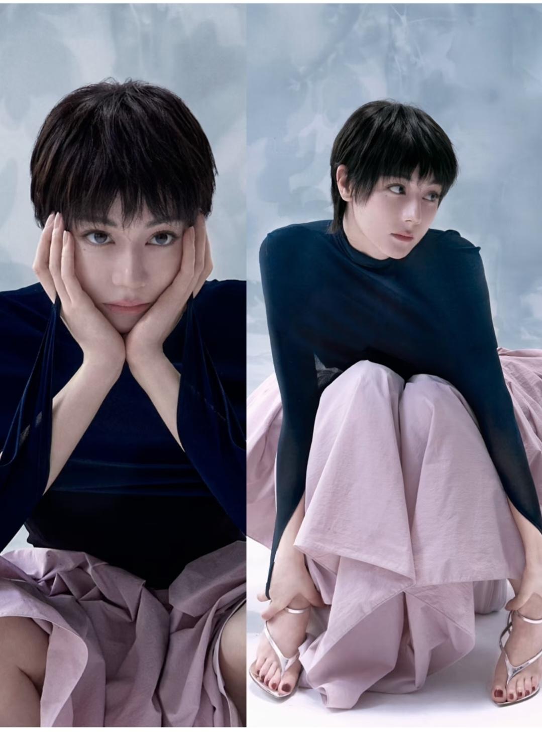 热巴,人美了就是好,这样的短发都那么的灵动。