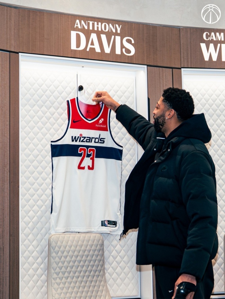 奇才社媒更新,晒出了浓眉抵达华盛顿的动态。浓眉来到了球队主场,参观了更衣室,进行