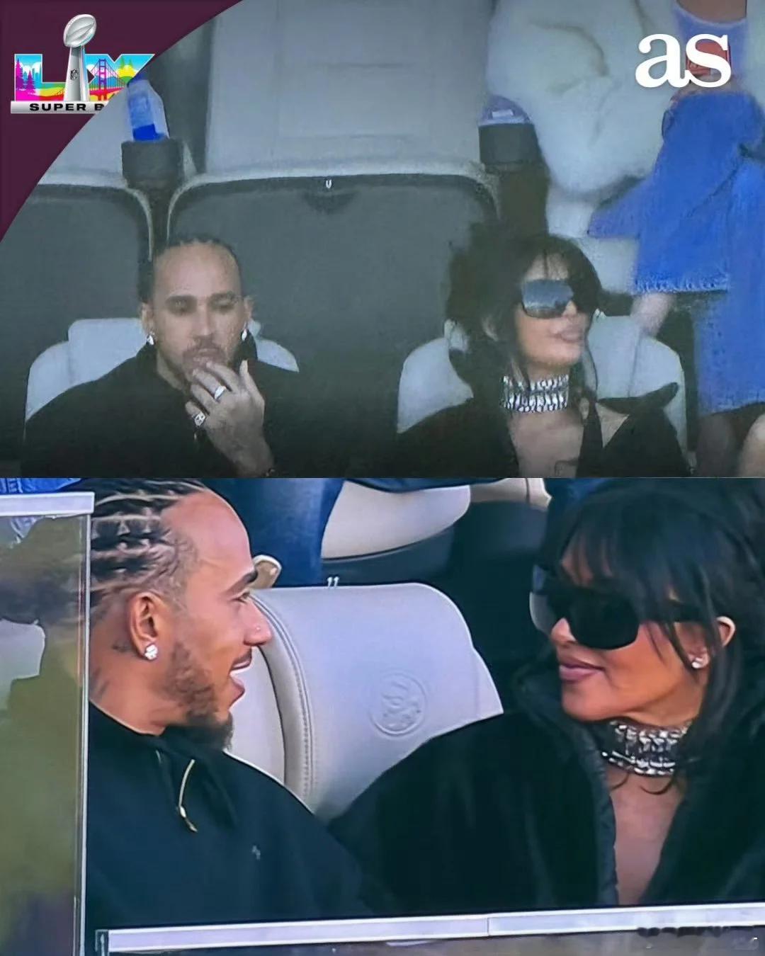 超级碗的名人之.......汉密尔顿 & 金 卡戴珊。 kim就是喜欢黑人呐...网球天王 费德勒也来咯~