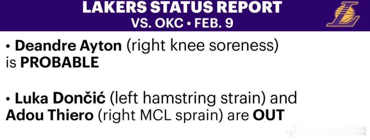艾顿明天大概率出战雷霆!东契奇继续缺席雷霆vs湖人