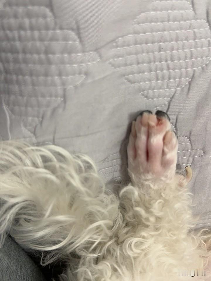 我家小比熊这几天老咬自己小脚,可把我急坏了。仔细检查,剃了脚毛才发现脚指甲缝边上的肉肉裂了个小口子。我赶紧给它抹了碘伏,还戴上伊丽莎白圈,就怕它再咬。 其实比熊老咬脚可能有不少原因。像我家这种是外伤,也可能是皮肤感染、趾间炎,还有寄生虫感染、心理压力大或者营养缺乏等。数据显示,约62%的病例和趾间炎有关,未绝育公犬发病率比母犬高23%。希望我家宝贝快快好起来,以后都健健康康的。 2026年2月9日