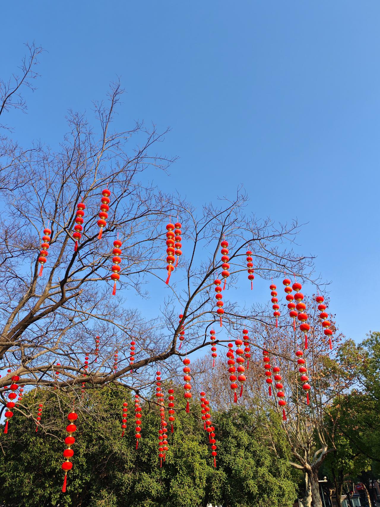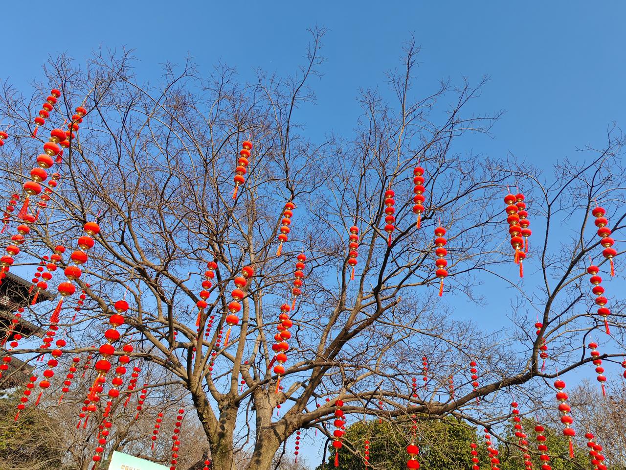 今年冬天的不同过年的气氛越来越浓了,武汉市马鞍山森林公园门口的大树上挂了好多红灯