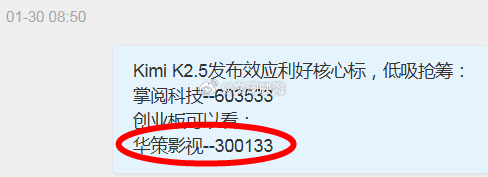 1月30日发布$华策影视 sz300133$ 今日最高涨9%。$中水渔业 sz000798$ 关注当日强势涨停,今日大涨4%。